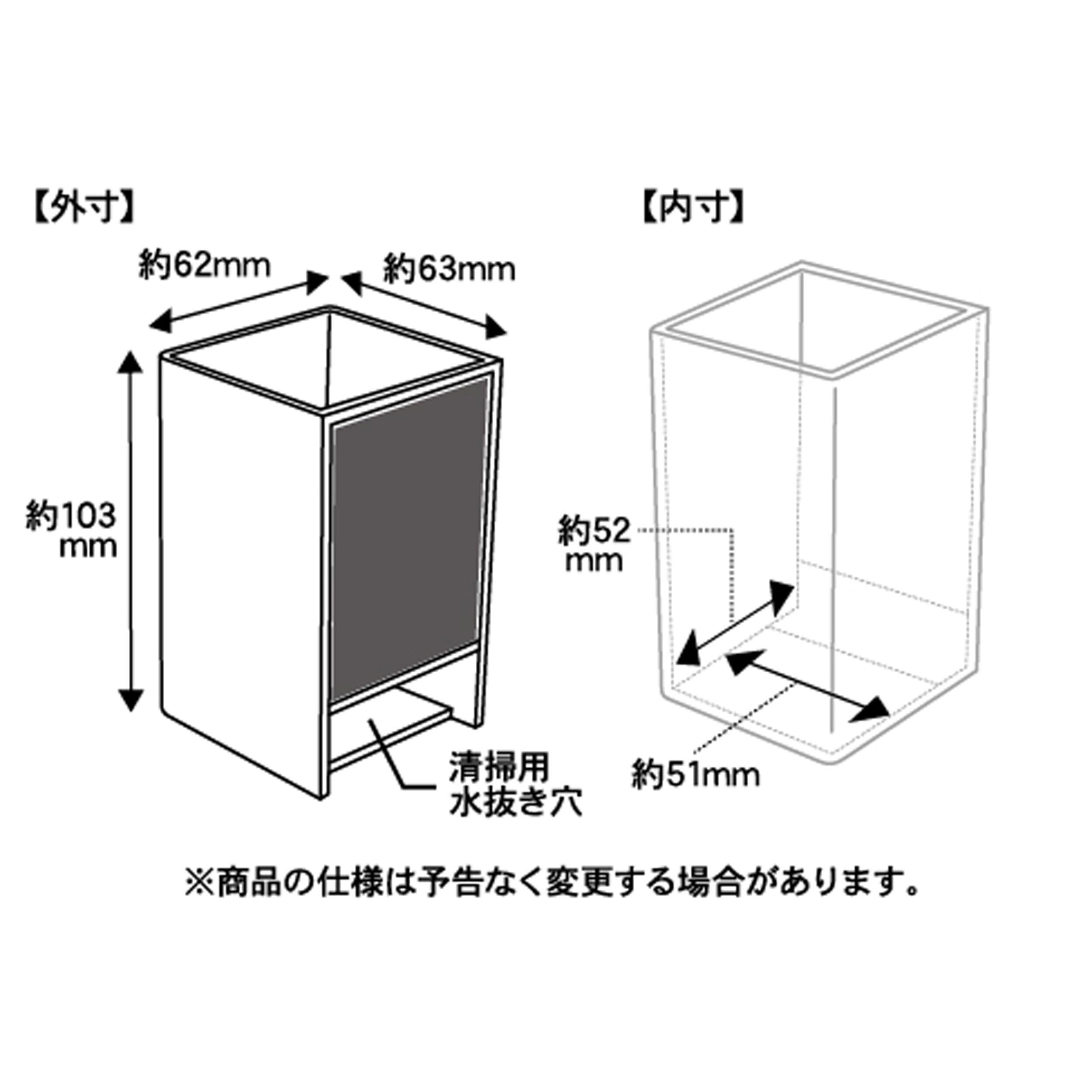 材質:ABS樹脂・ゴム磁着、商品サイズ:外寸約6.2×6.3×10.3cm、内寸:約5.2×5.1cm耐荷重:約400g