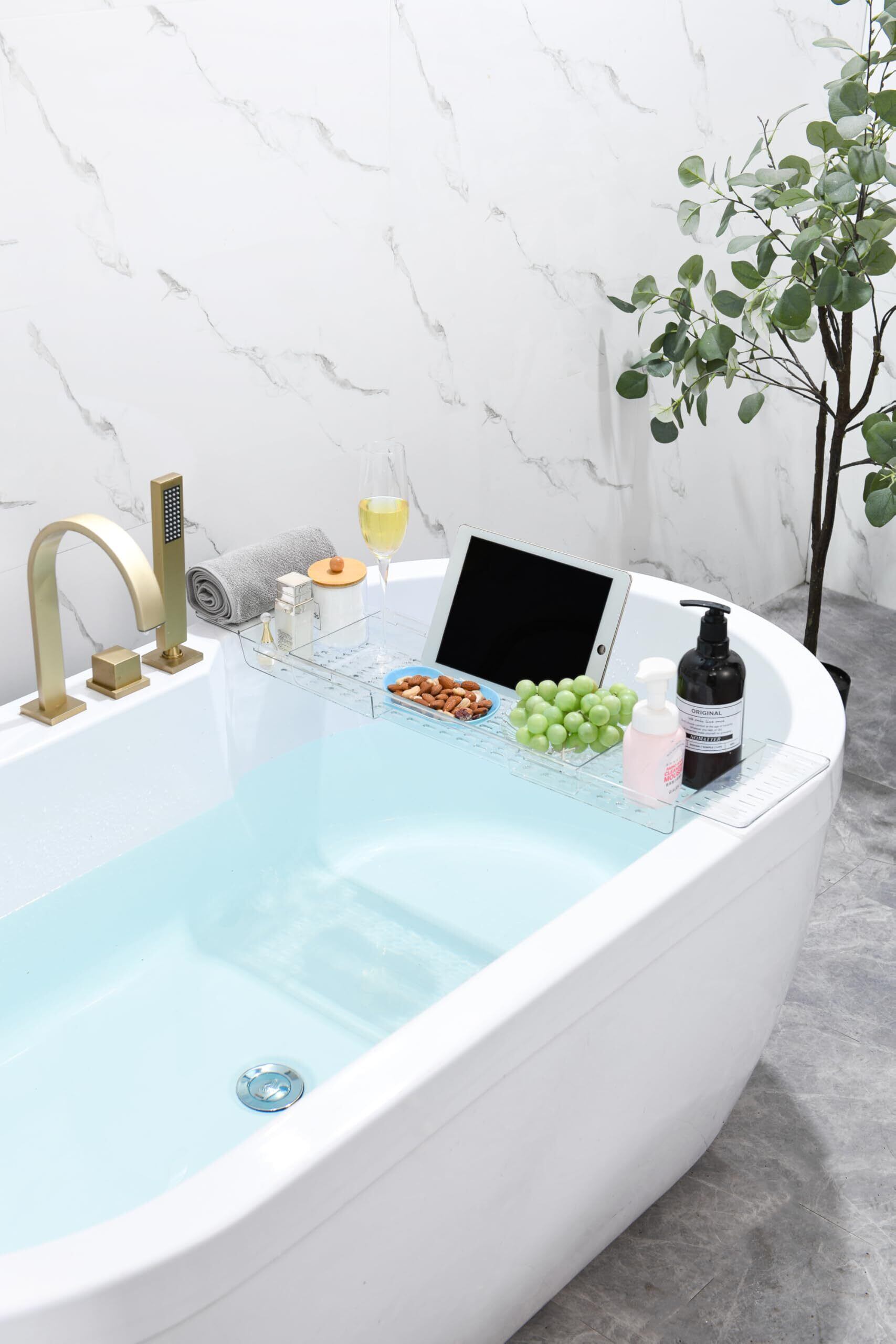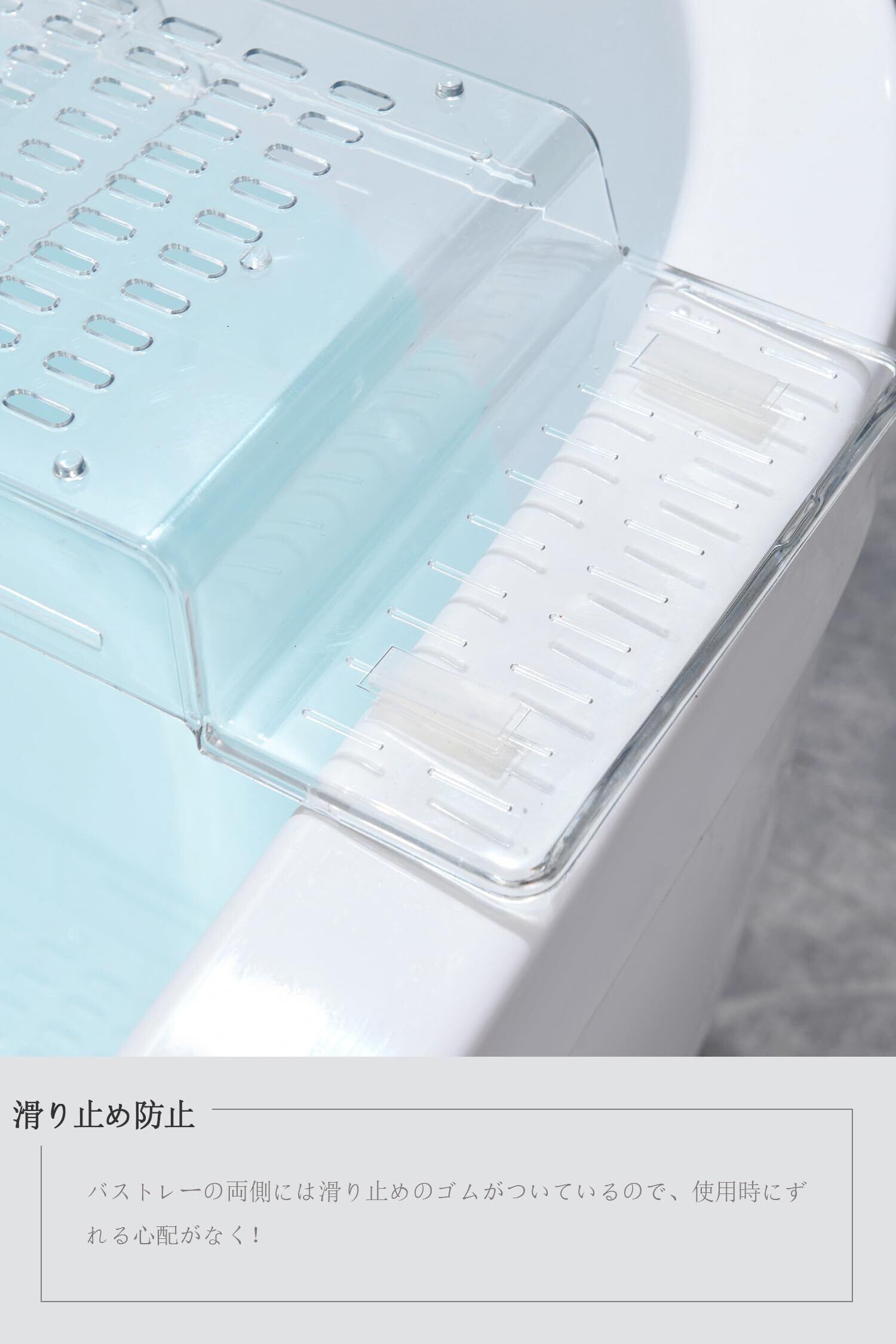 Miitech バスタブトレー お風呂 テーブル 伸縮式 水切り シリコン滑り止め バスタブ スタンド バステーブル お風呂 バストレー 伸縮サイズ56.5~80cm (クリア)