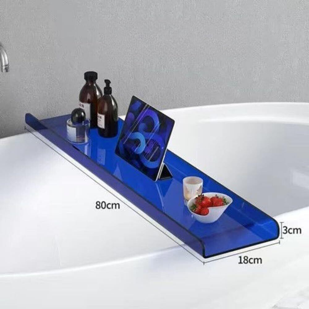 「この『バスタブトレイキャディ』で、あなたのバスタイムをより優雅で快適なものに変えてみませんか!」/特徴:高品質なアクリル製のこのバスタブトレイは、幅70cm、奥行き18cm、高さ3cmのサイズで、厳選されたデザインに仕上げられています。お気に入りの飲み物や読書、リラックスタイムを楽しむための完璧なスペースを提供します。