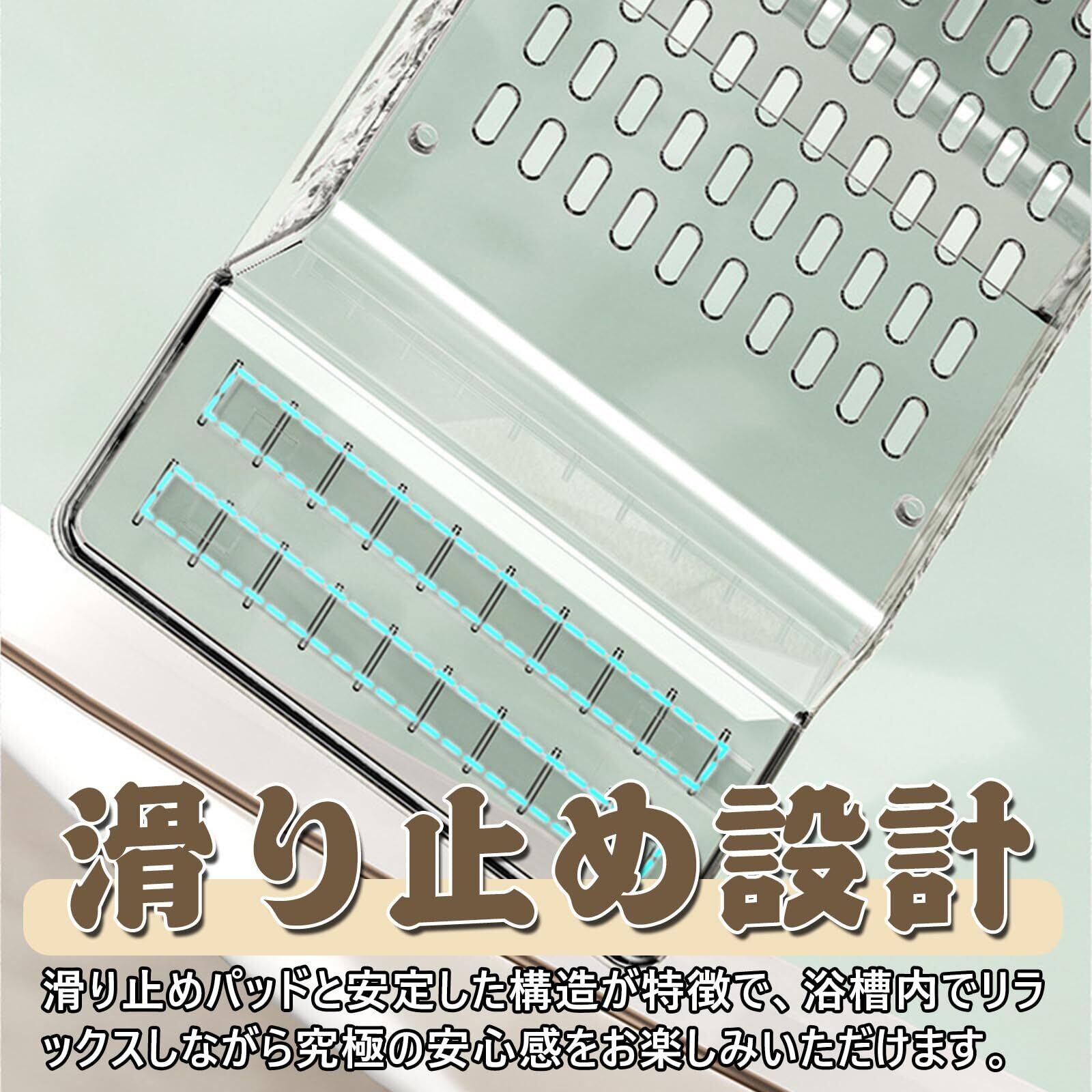 【素材と滑り止め】この浴槽トレイは環境に優しいPP素材から巧みに作られており、完全に安全で安心な入浴体験を提供します。滑り止めパッドと安定した構造が特徴で、浴槽内でリラックスしながら究極の安心感をお楽しみいただけます。