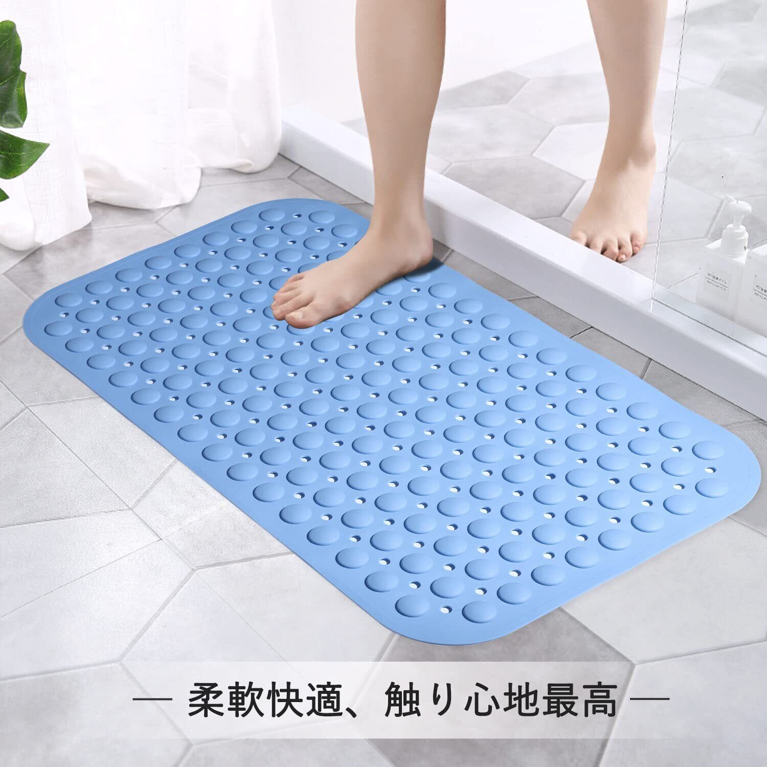 Toski お風呂 すべり止めマット 浴槽 TPE製 40×70cm 浴槽滑り止めマット 吸盤付き 介護 柔軟快適 転倒防止 防カビ 老化防止 浴槽内 洗い場 出入り口 多場所利用 介護用品 浴室内バスマット ブルー