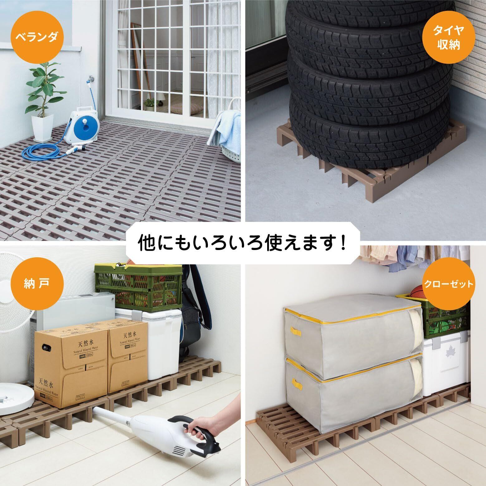 8枚のすのこは自由に組み合わせることができ、スペースやお好みに合わせてサイズ調整も簡単です。狭いお部屋でも、自在にレイアウトできます。