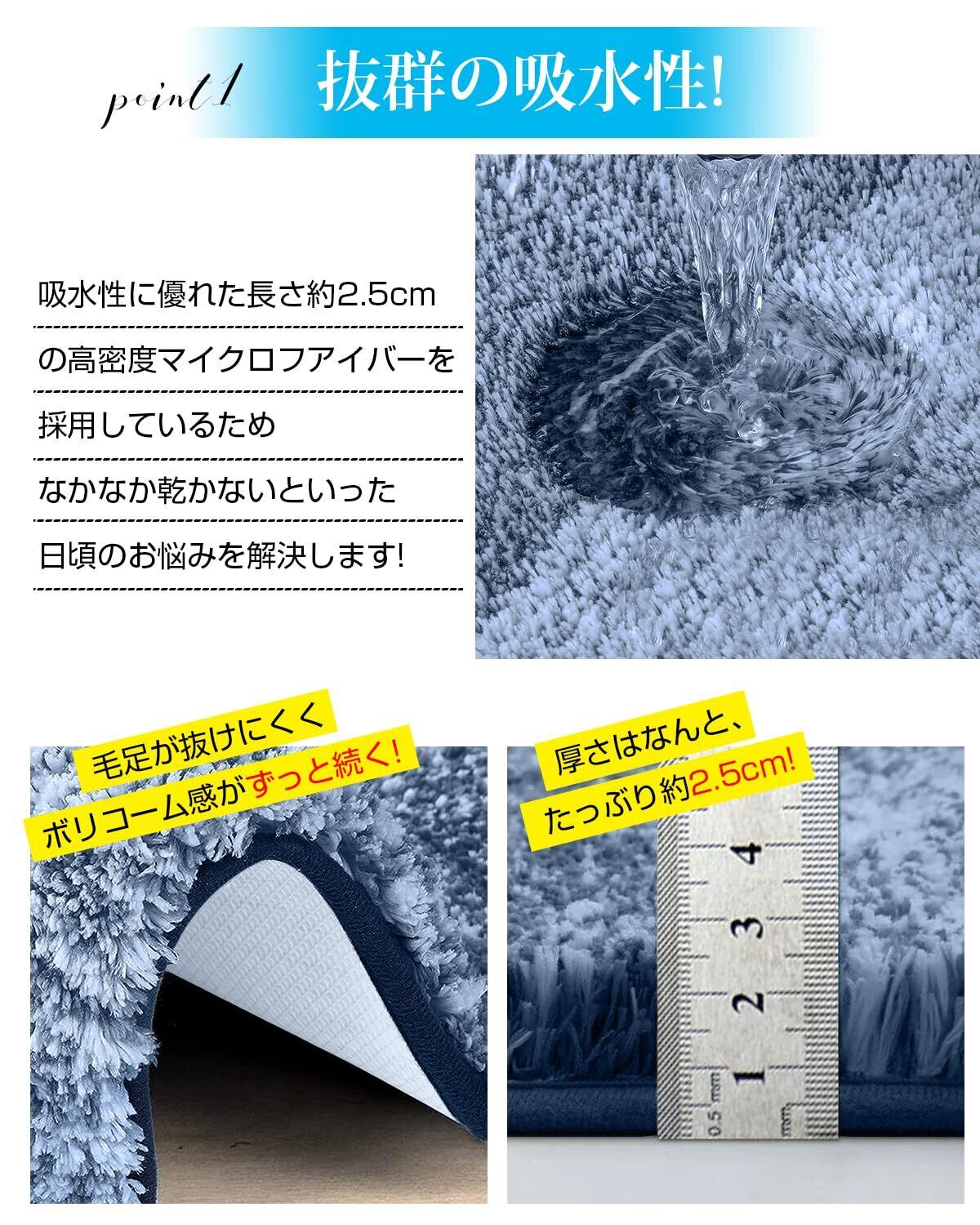 【吸水性 & 速乾性に優れている】 ふんわり優しい肌触りの極細マイクロフアイバーが水分をしっかり吸収します。トン・トン・トンと2、3回足踏みするだけで、圧倒的なスピードで水分を一気に吸い上げてくれます。速乾性も高いため、2人目3人目もビショビショしなくて、ふかふかであたたかい状態を維持してくれます 。