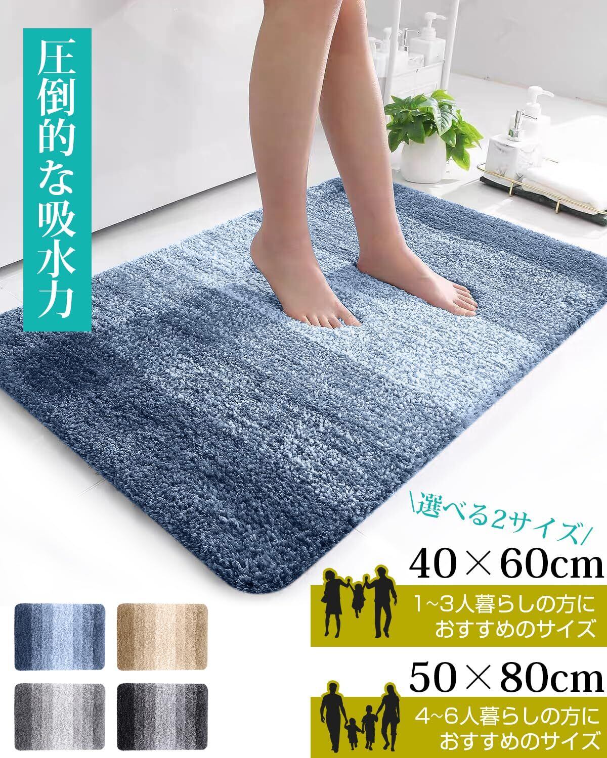 このバスマットは、高品質なマイクロファイバーを使用しており、瞬時に水分を吸収します。お風呂上がりの湿気をしっかり取り込み、足元をいつでもサラサラの状態に保ちます。