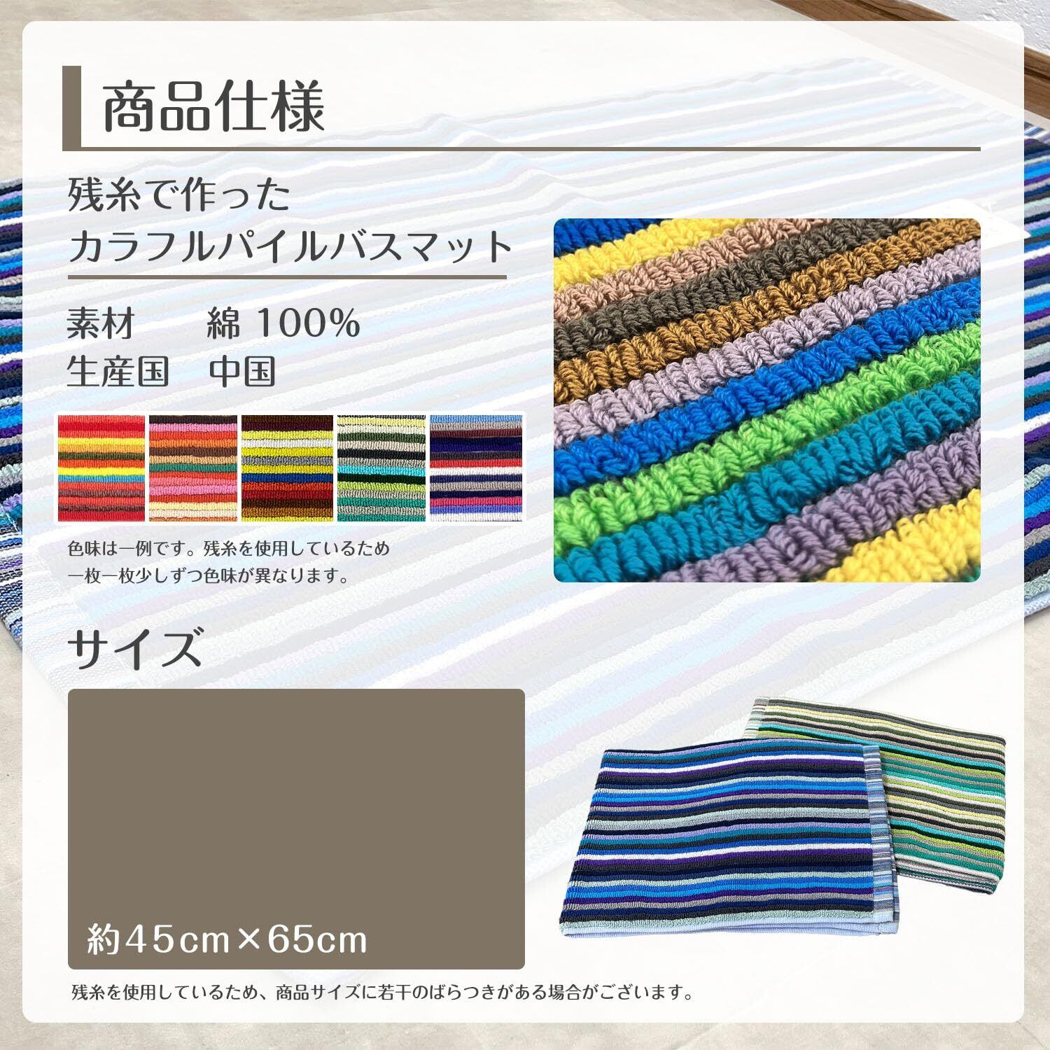 【商品名】残糸で作ったエコなタオル地バスマット【商品サイズ】約45×65cm【商品重量】約180g【素材】綿100%【生産地】中国