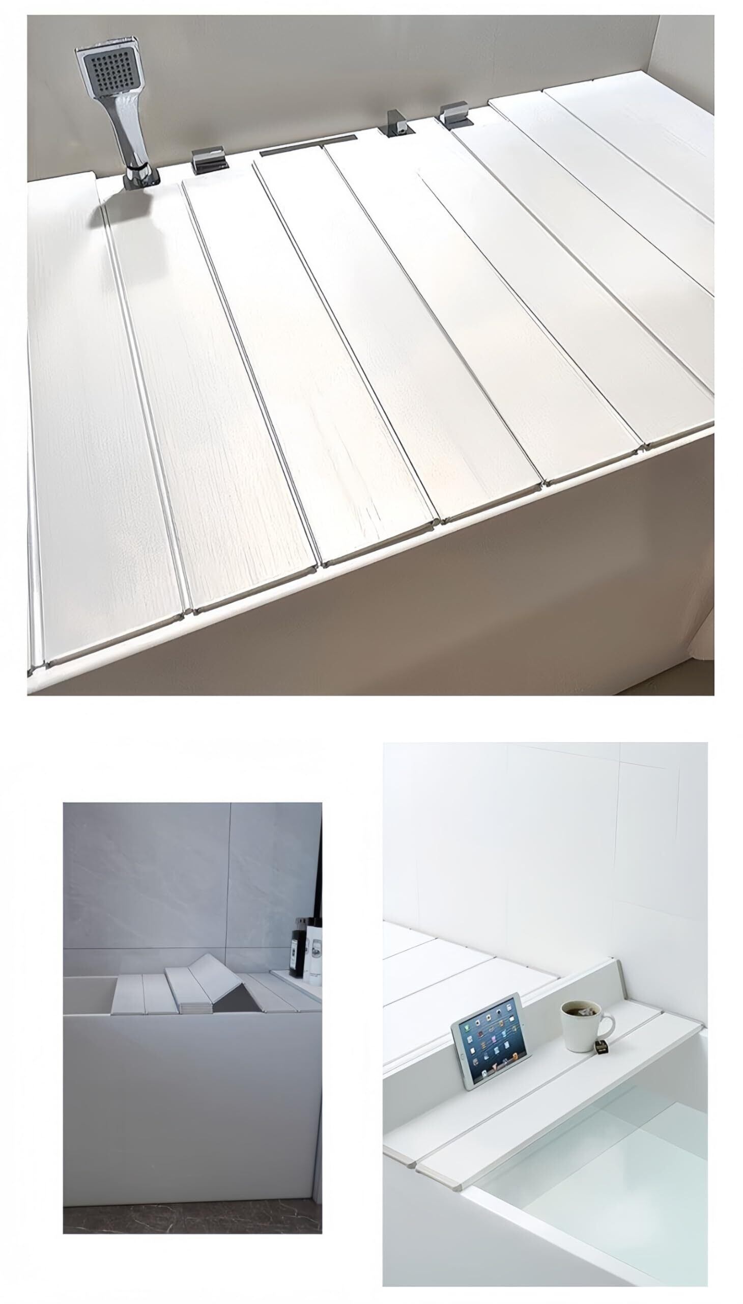 「この『お風呂 蓋 カバー』で、毎日の入浴をさらに快適に楽しみましょう!」/特徴:幅70cm、長さ130cmのスタイリッシュでおしゃれなホワイトの風呂ふたは、あなたの浴室にぴったりフィットします。美しいデザインと優れた機能性を兼ね備えたアイテムです。
