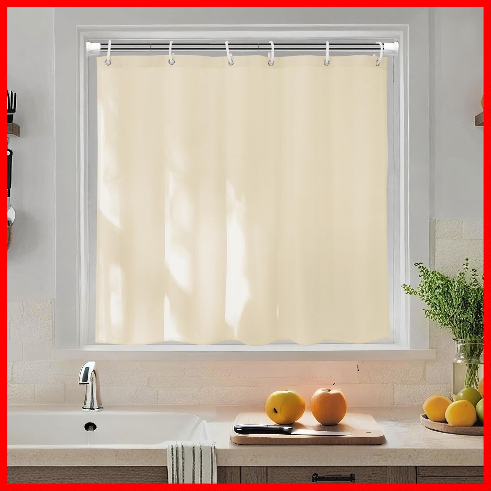 【特価商品】AooHome シャワーカーテン 小窓 目隠し 防水 短め 防カビ ユニットバス 浴室窓 お風呂窓 80cm丈 カフェカーテン 間仕切り 無地 リング付き 洗濯可 ベージュ