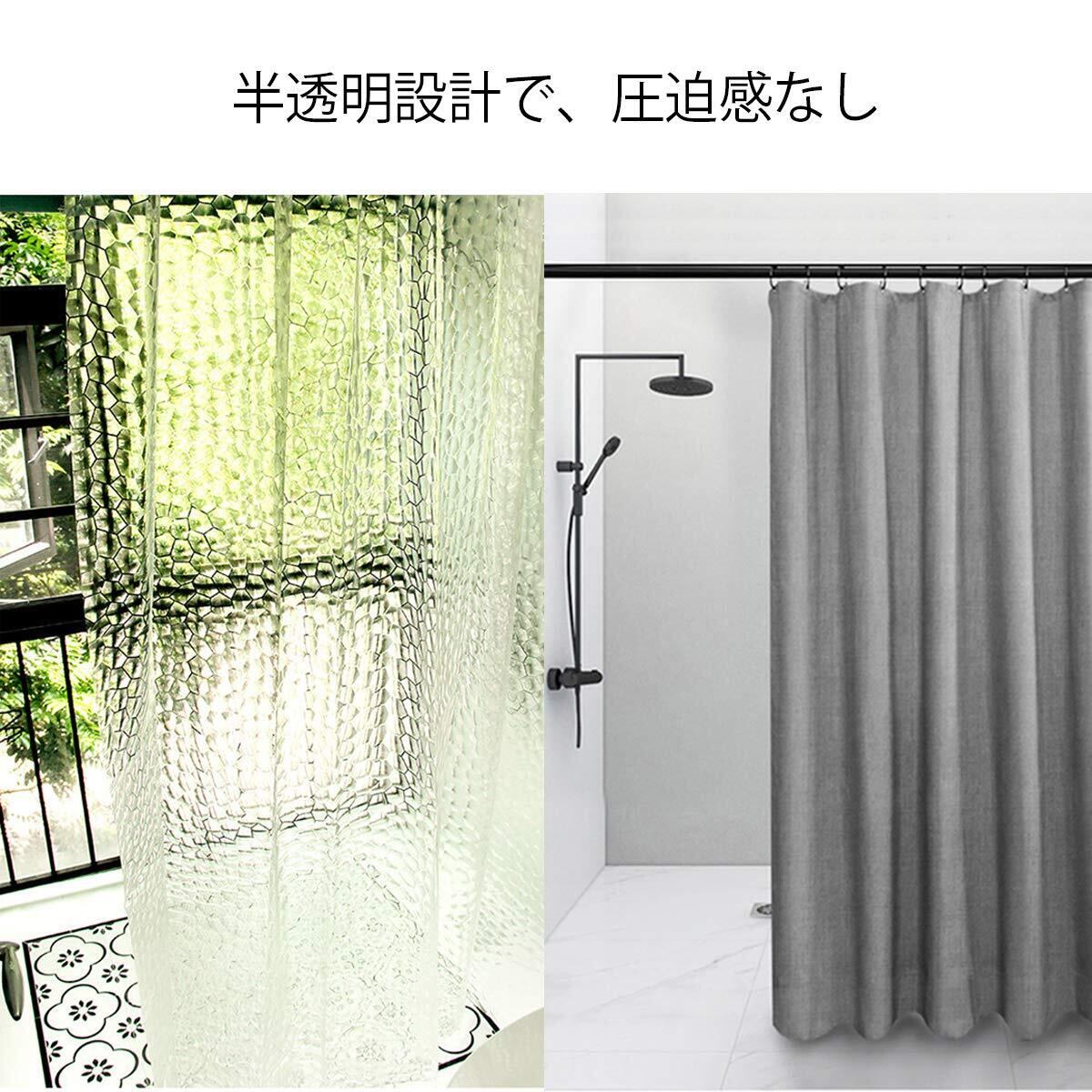 【防水防カビ】バスカーテン表面はナノ加工で、水やカビが付けません。手入れも簡単、汚れなどはタオルで拭いてすぐ乾燥し、きれいになります。またPVC素材を採用し、柔らかくて手触りがいいです。