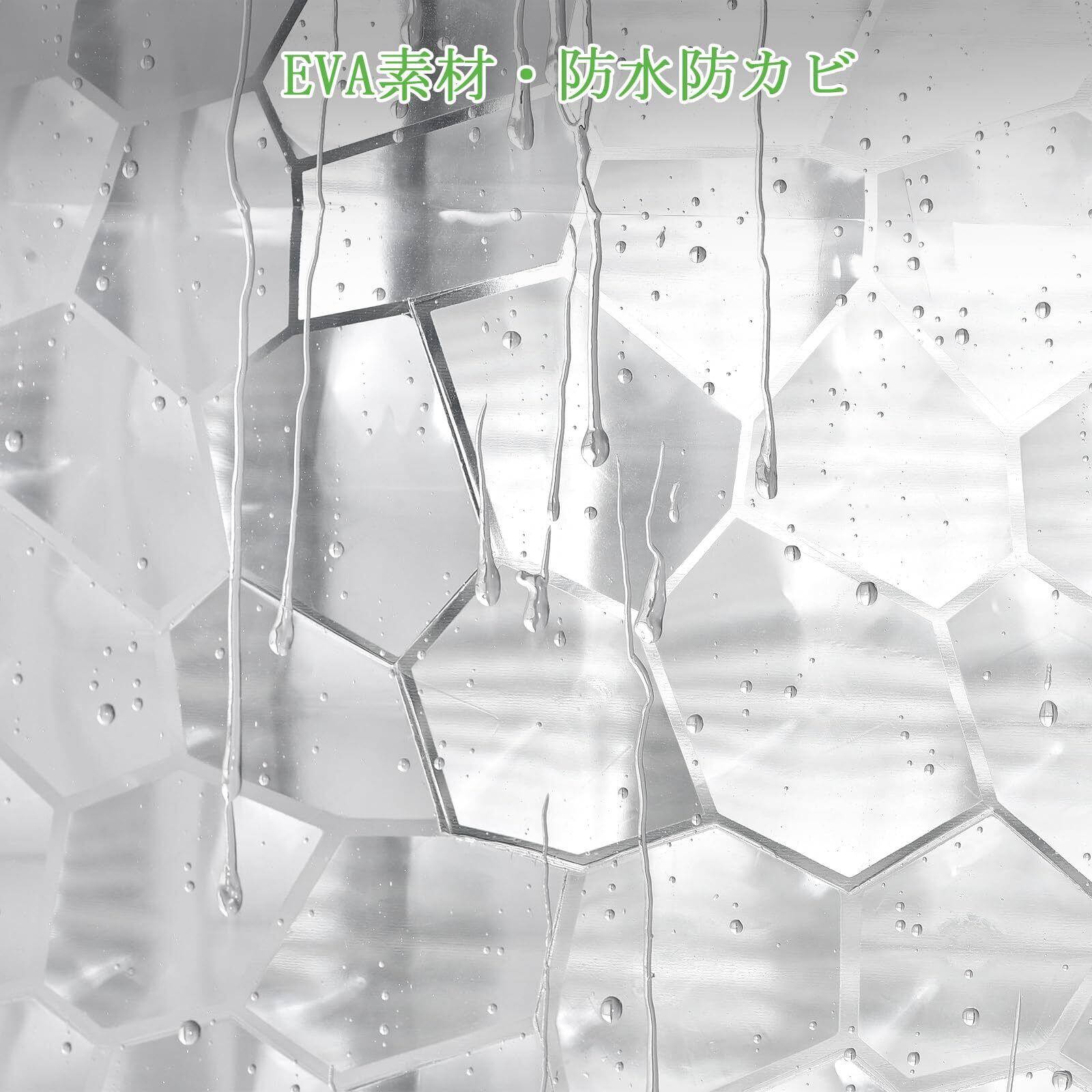 【半透明&3Dウオーターキューブ立体加工】半透明のデザインなので、光も透過し、浴室内も明るく保つことができます。距離が離れるほど画面の立体感が高くなります。シャワーカーテン表面には3Dウオーターキューブ加工で目隠しよく、プライバシーを保護されます。浴室カーテンであり、コーディネートがしやすいの半透明シャワーカーテンです。