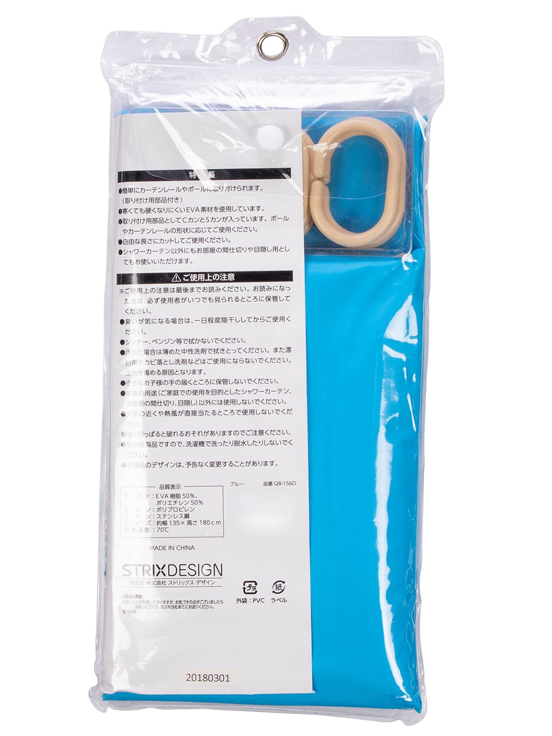 ストリックスデザイン シャワーカーテン 防水 ブルー 135×180cm フック付き お部屋の間仕切りにも ユニットバス 浴室 QB-156D