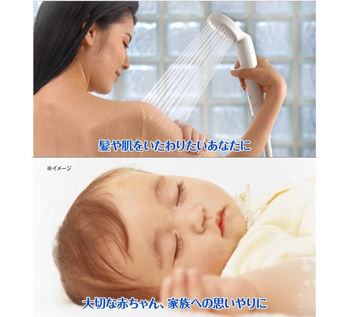 【髪や肌をいたわりたいあなたに】髪や肌にダメージを与える残留塩素をしっかり除去。
