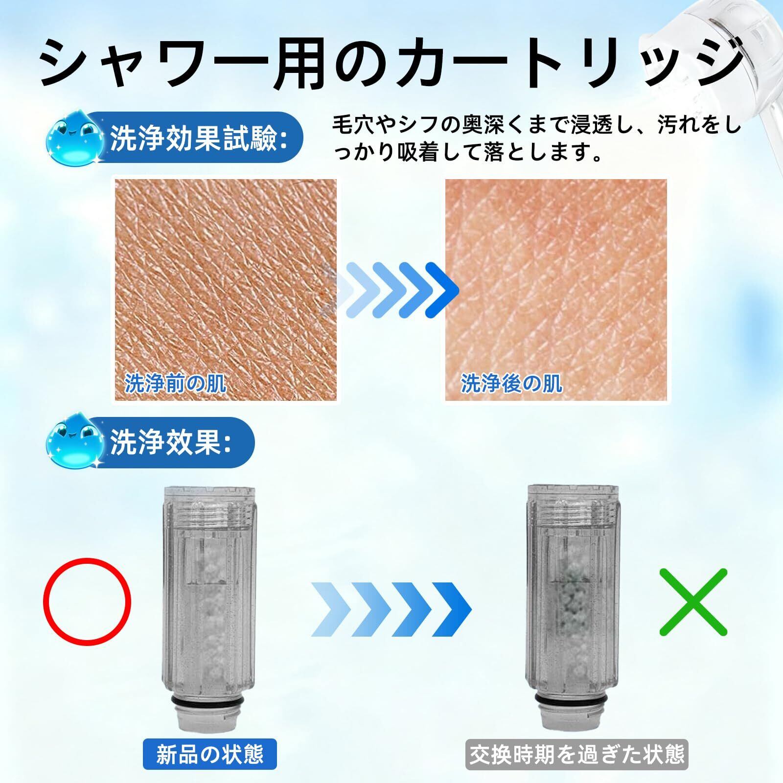 このカートリッジは、高品質なフィルターを使用しており、水中の不純物をしっかりと除去します。クリアな水を常に供給し、家族全員が安心して使用できる清潔なシャワー環境を提供します。