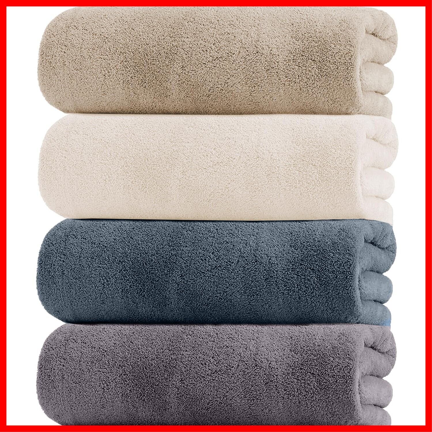 【新着商品】バスタオル 大判 4枚セット ホテル仕様 ふわふわ 【ATOKA 120X60CM 4色】 マイクロファイバー 厚手 速乾タオル