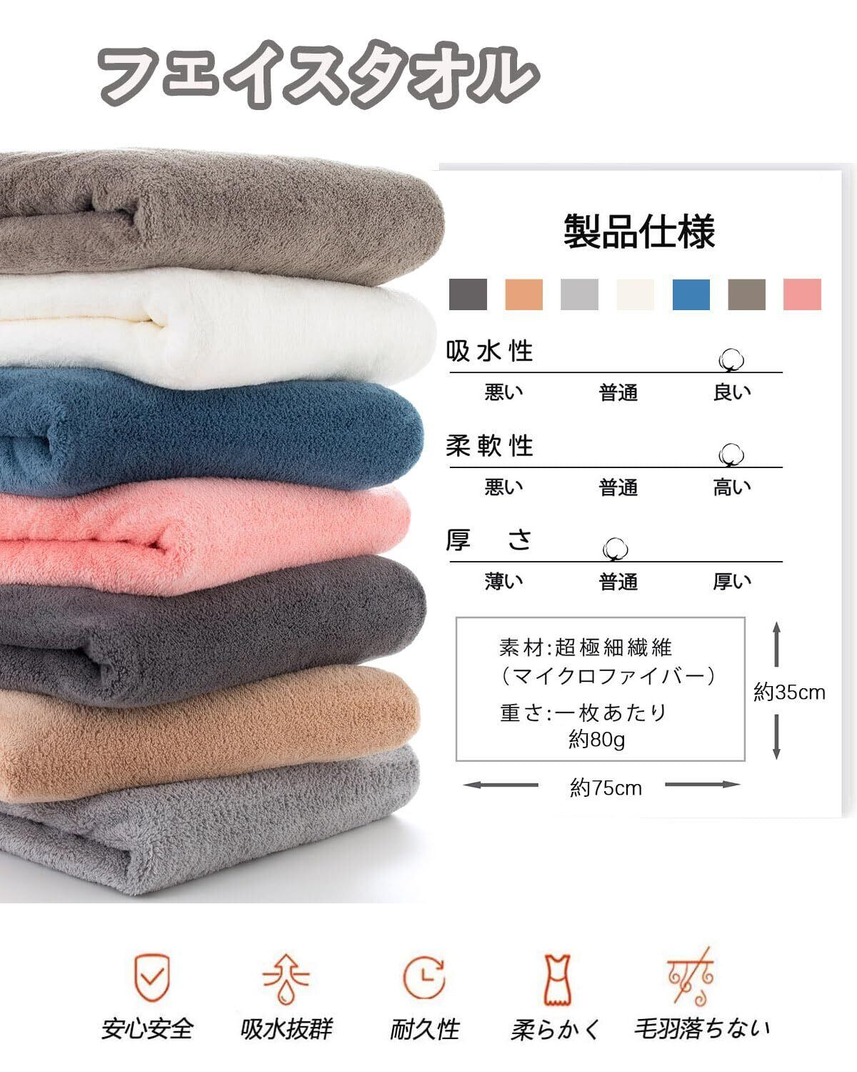 【材質】:ポリエステル85%、 ポリアミド15%高級マイクロファイバー素材を採用 - 伝統的な綿タオルと比べると、このタオルは毛髪の1/100超微細繊維(マイクロファイバー)で作られたフェイスタオルです、触り心地最高、優しくてやわ らかい肌触りです、やさし い仕上げに蛍光染料は使用 しておりません。品質:このタオルが色褪せない、毛羽落ちしないことをします。