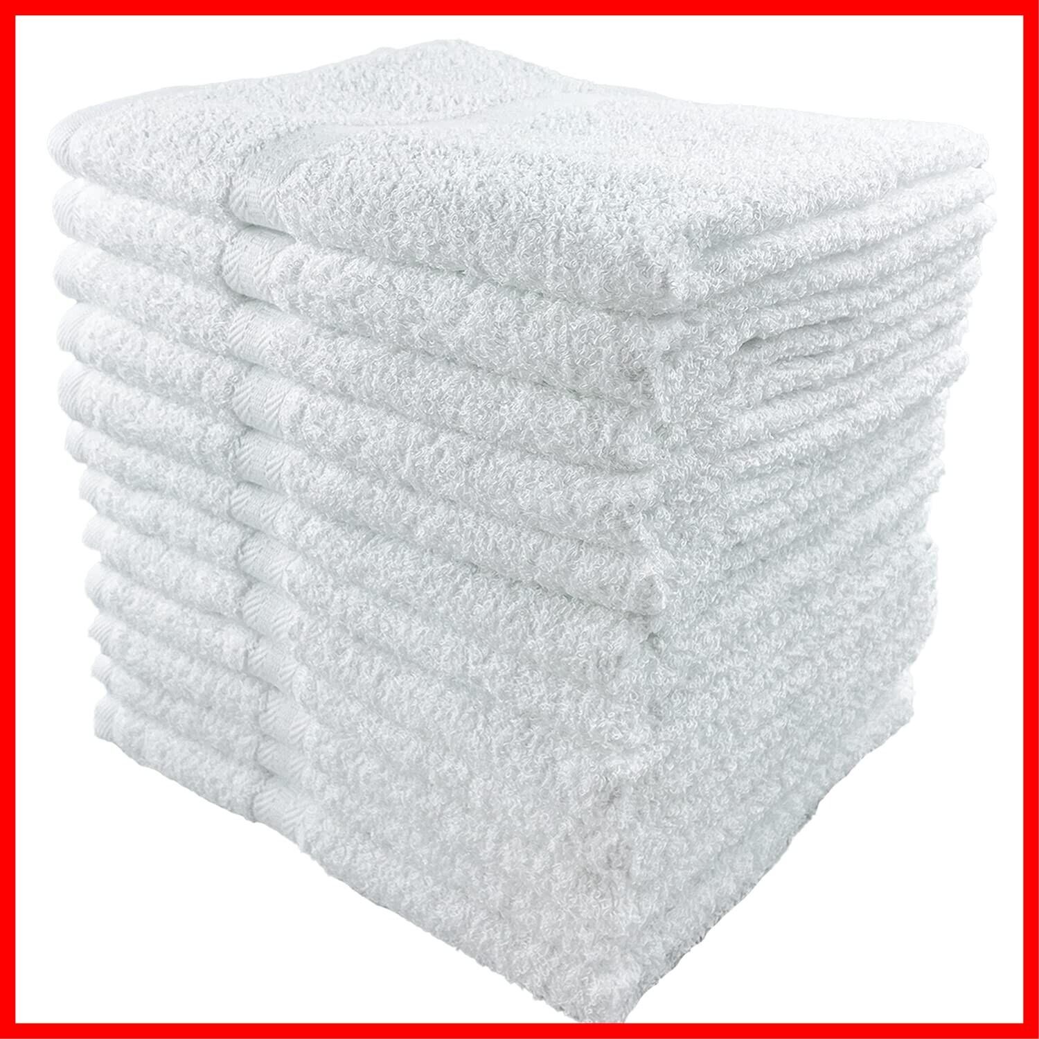 まとめ買いに便利な12枚パック。洗顔や入浴用にも掃除用にも使える万能なコットン100%の普通の白タオルです。