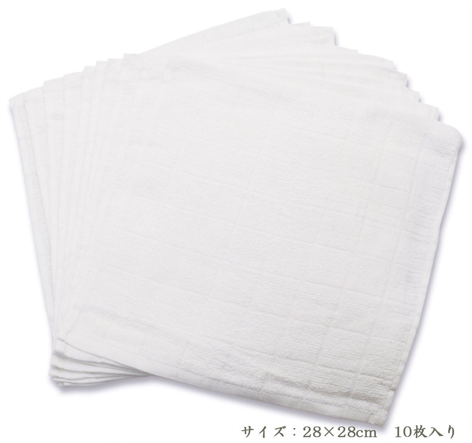 【在庫セール】中村(Nakamura)おしぼり 格子柄タオル 業務用 10枚入り 綿100% ホワイト 28×28cm