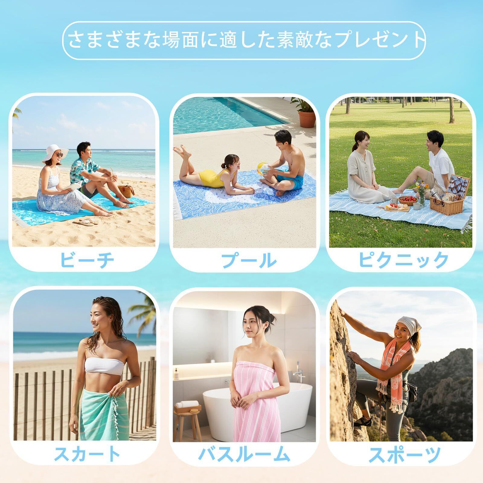 【軽量で砂なし】: ビーチタオルは休日をよりリラックスして楽しいものにします。 他のビーチタオルと比較して、このビーチタオルは軽量で通気性に優れています。 コンパクトで折りたたみやすく、非常に省スペースです。 バッグに詰めていつでも出かけることができます。 さらに、ビーチで遊び終わったら、振って砂をそのままにしておきましょう。