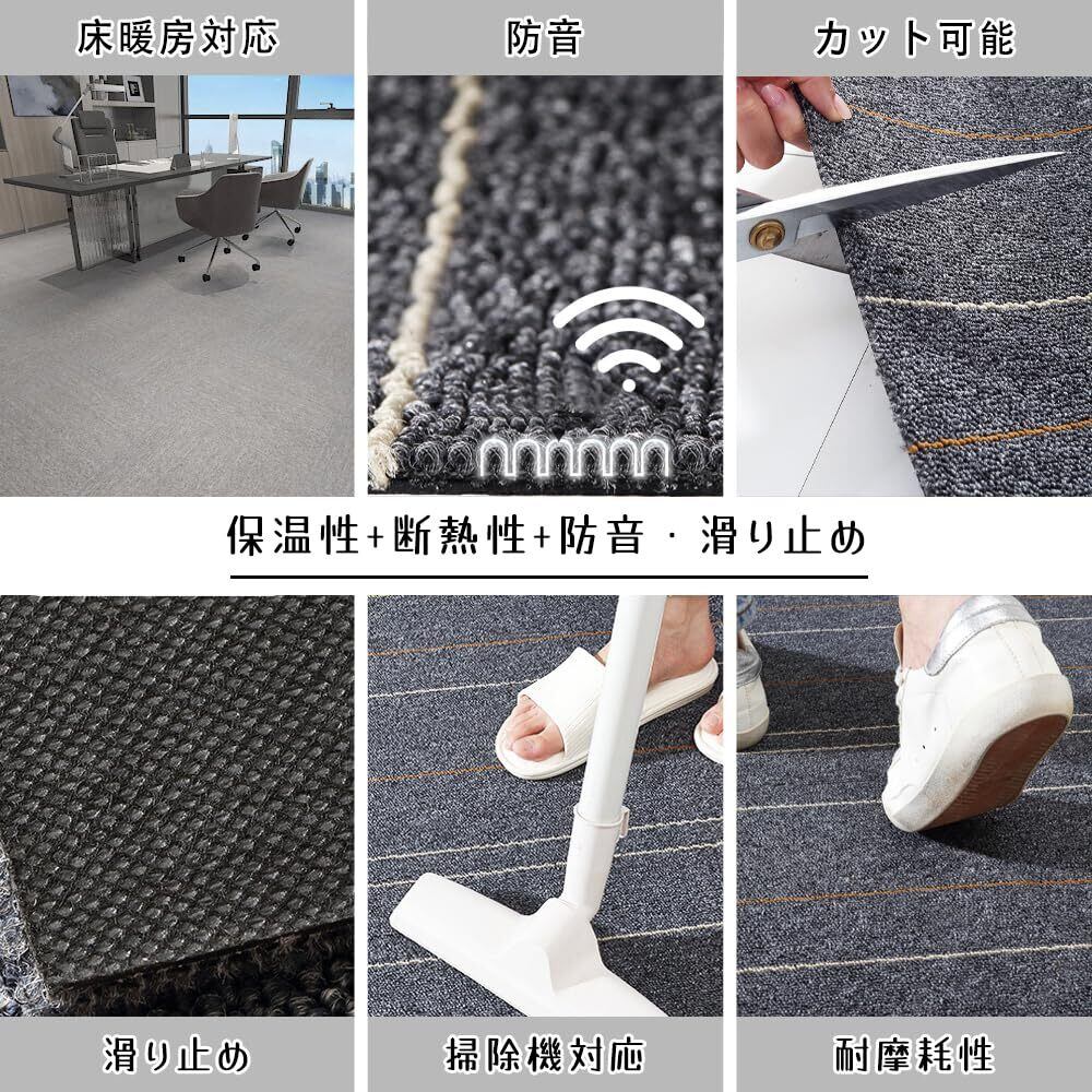 【新春セール】タイルカーペット 50x50 黒 厚手5mm 40枚 オフィス 事務所 カーペット 正方形 置くだけ フロアマット 床 大判 滑り止め ずれ防止 耐久性 防音 難燃性 磨耗に耐え タイルマット カット可能 床暖房対応 PVC裏面 原状回復可 会社/家庭/賃貸/業務用/住宅用 現代シンプル風【約6畳】
