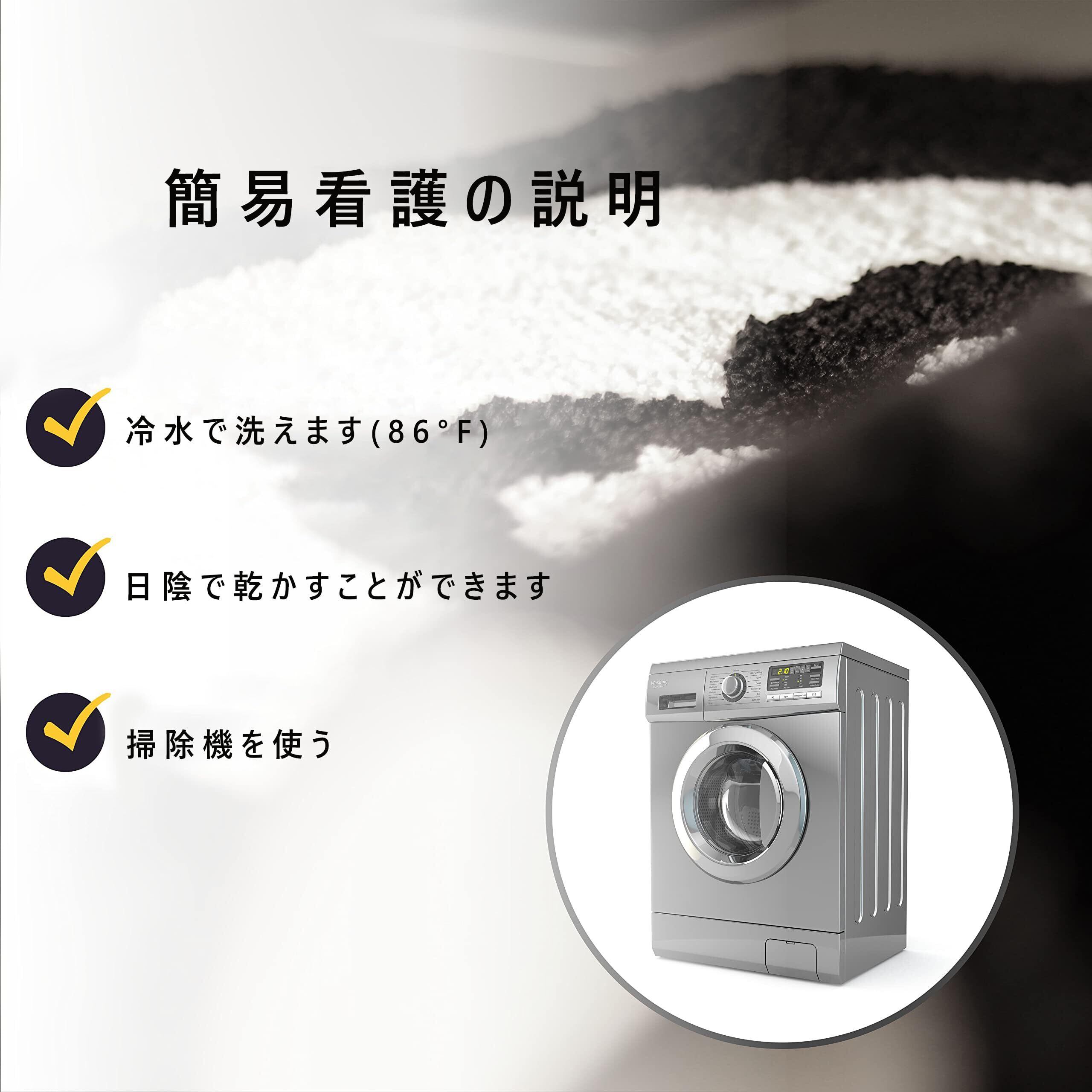 このラグマットは洗濯機での洗濯が可能なため、お手入れも手軽です。汚れた部分だけを外して洗うことができ、いつでも清潔感を保ちながら長期間お楽しみいただけます。