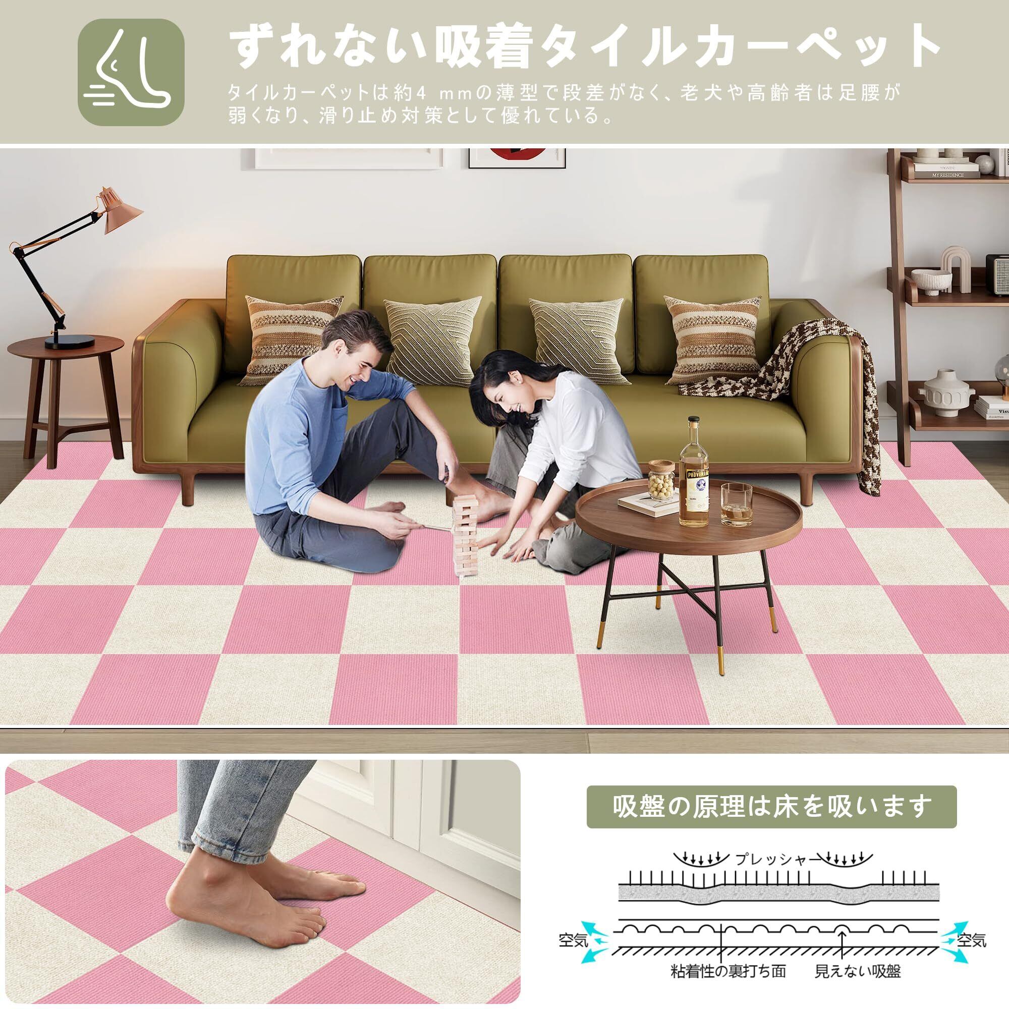 【在庫セール】【 限定ブランド】ジョイントマット 【45*45*0.4cm 20枚】大判タイルカーペット XIWEIYI 吸着マット タイルマット ずれない 防音保温 床暖房にも対応 洗えるカーペット ペット用 ペット/高齢者の滑り止め対策 お手入れ簡単 設置簡単 DIY可能(ピンク&クリームホワイト)