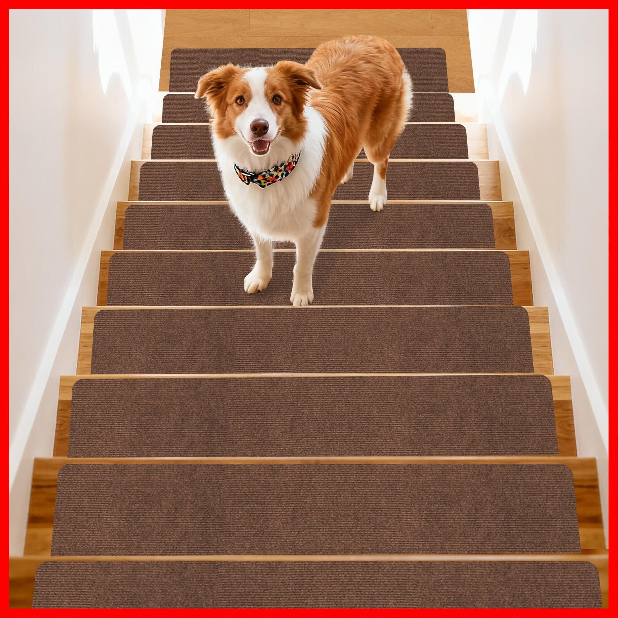 Keilymat 階段マット 防音階段マット 猫犬階段滑り止めマット 簡単取り付け滑り止めマット 自由カット 四季通用階段敷き 吸着マット 足腰負担軽減 ズレない 階段クッション 転倒防止 キズ防止 子供や高齢者 ペット 70X22cm 15枚入