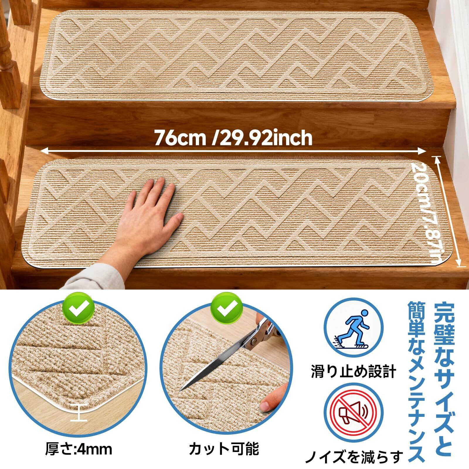 Bolinker 階段マット 階段用滑り止め 階段敷き吸着式 床保護 ステップマット クッション 転倒防止 キズ防止足腰負担軽減 ズレない子供や高齢者 ペットなどの安全対策に 図案は美しくて76X20cm 15枚入り(ベージュ)