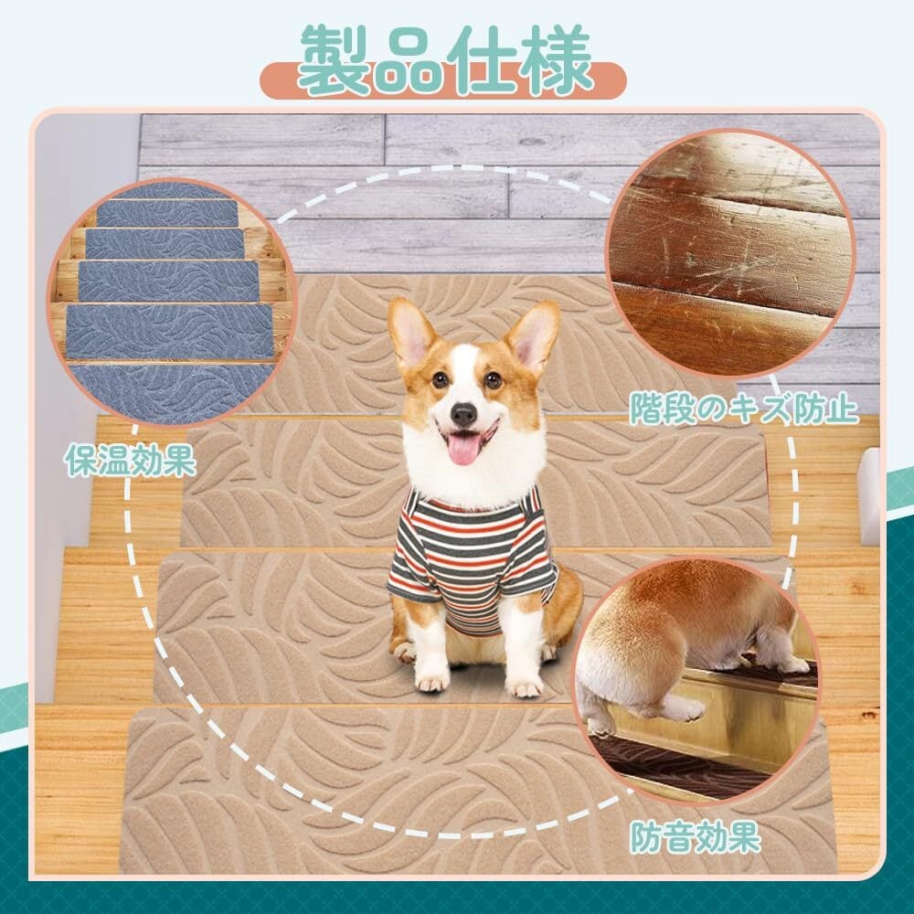 【数量限定】階段 滑り止めマット ずれない 【15枚】 約55×19cm 吸着階段マット 階段用ステップマット 階段カーペット 転倒防止 キズ防止 防寒 カットOK 洗える 防音 ペット シニア 足腰負担軽減 安全対策 四季通用