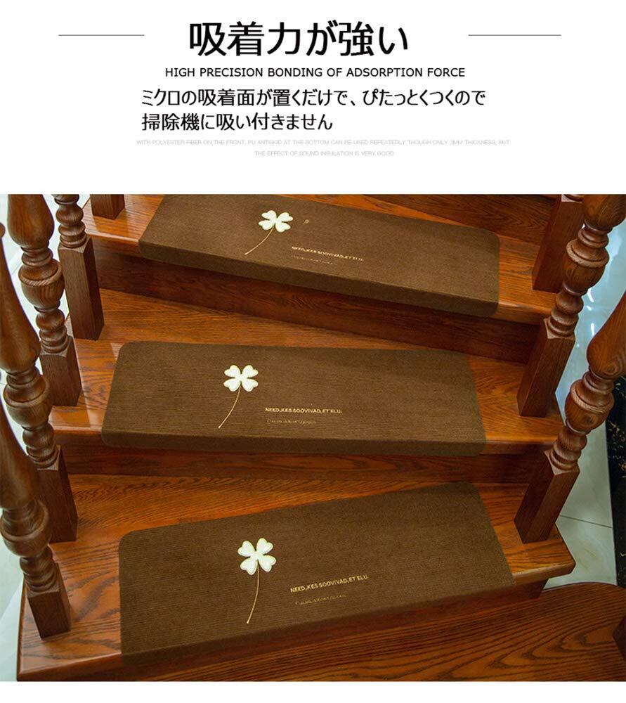 階段用マット YMR 滑り止め 15枚セット 夜光設計 防音 洗える キズ防止 折り曲げ 約55×22cm 階段用 ステップマット 四季通用 吸着式 洗える (クローバー(ブラウン), 15)