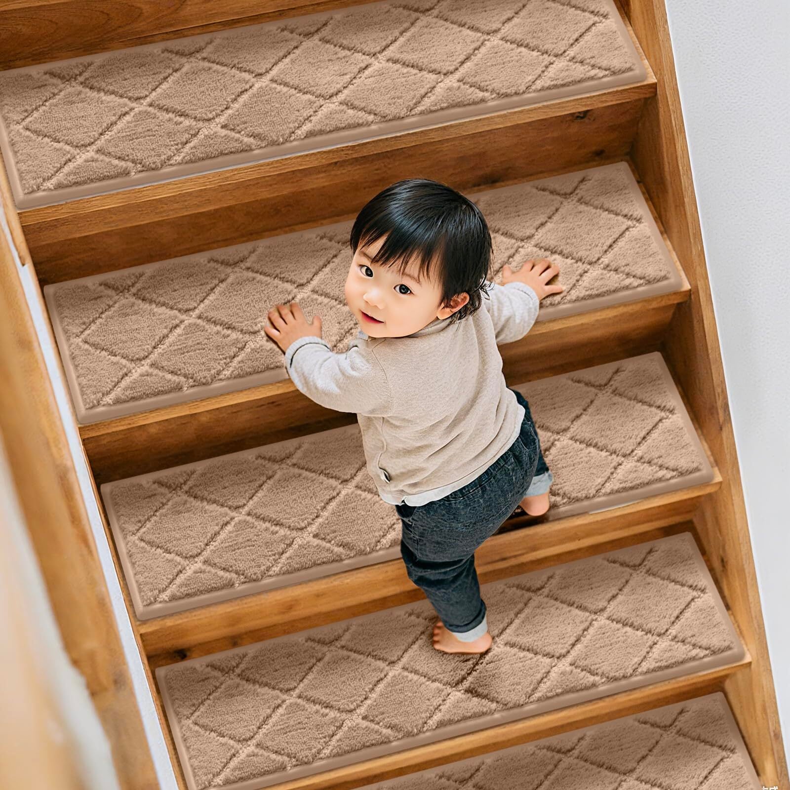 BOBO 洗える吸着階段マット タフティングマット 滑り止め 階段保護マット 厚さ12.5mm カーペット すべり止め 防滑 保温 防音 洗濯機丸洗い可能 ベージュ(4枚入)
