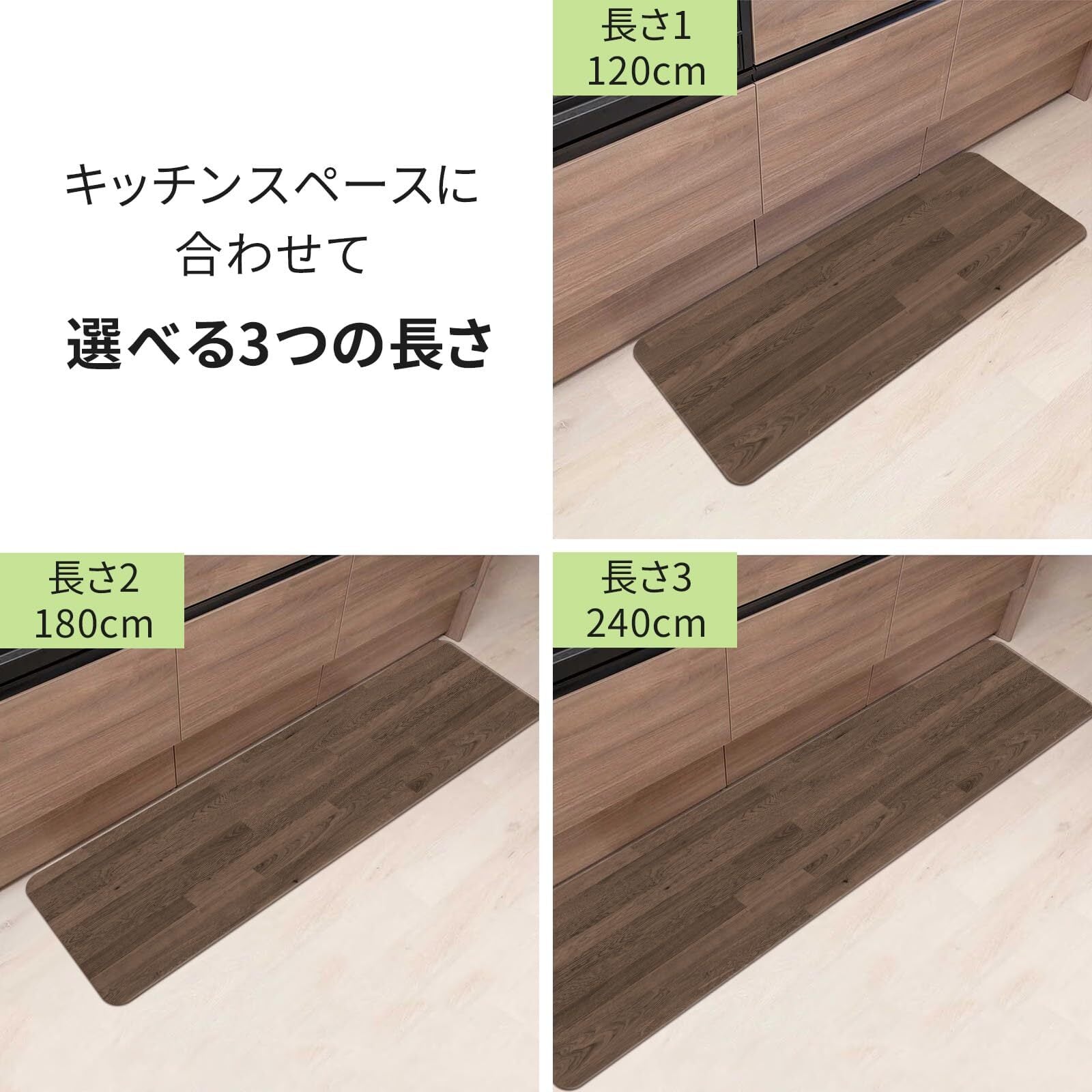【お洗濯不要】 キッチンマット 拭ける 木目柄 60×240cm 厚さ6mm 低反発 PVC クッション 撥水 滑り止め 床暖房対応 ZPAI 台所用マット 拭くだけお手入れ 汚れが染み込まない 「木目ブラウン」