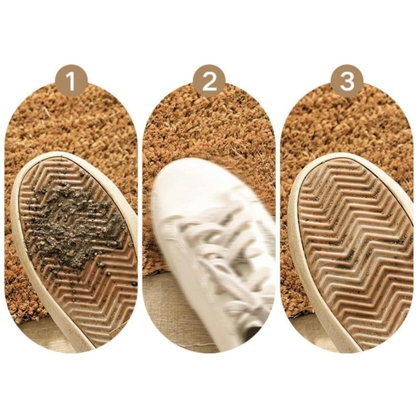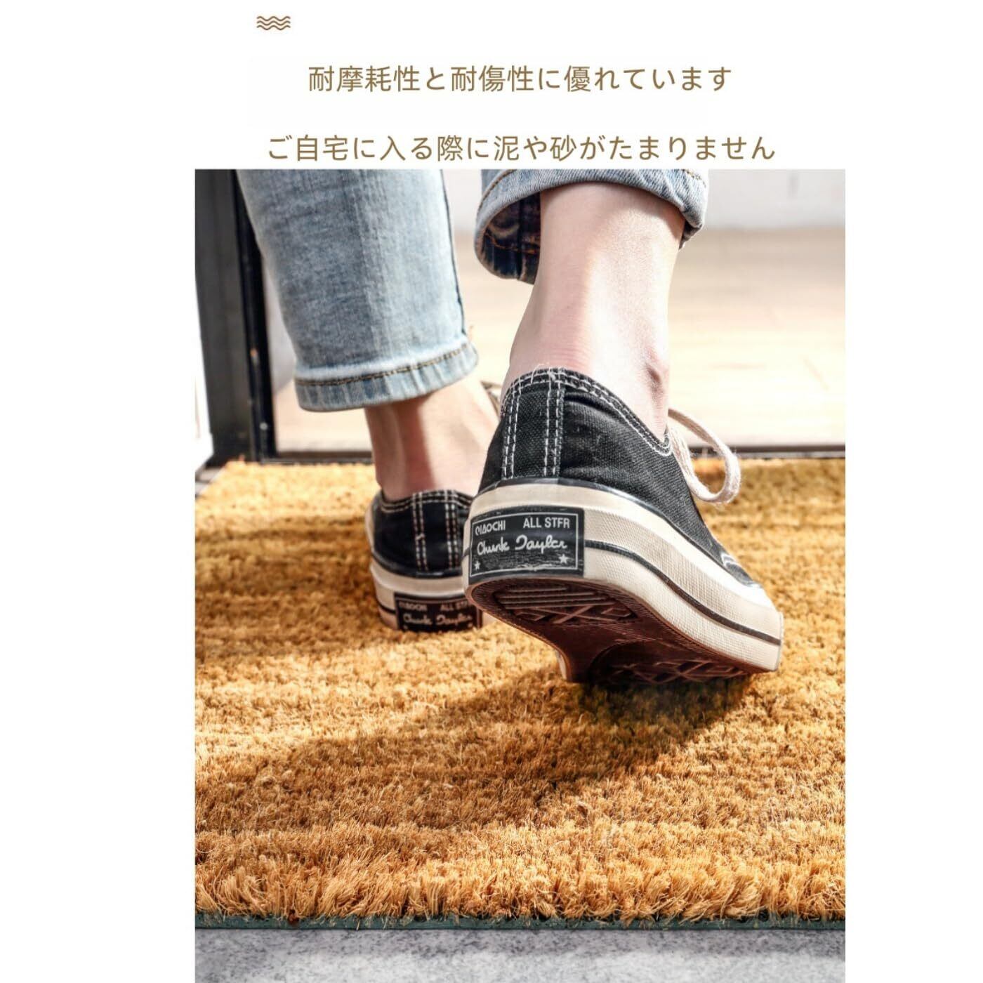 このココヤシマットは、靴底に付着した泥や水をしっかりとキャッチします。特に雨や雪の日でも、玄関を清潔に保つのが容易です。また、独特の凹凸設計が靴の汚れをしっかりと掴み、安心して室内に入ることができます。