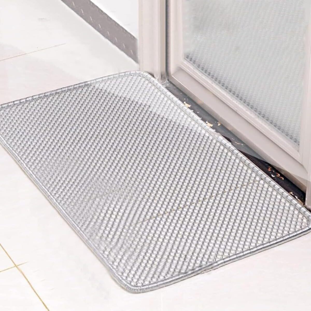 「この『玄関マット』で、あなたの玄関を爽やかで清潔な空間に変えてみませんか!」/特長:サイズ80×45cmのワイヤーメッシュデザインで、屋外での使用に最適です。金属製のメッシュが泥や汚れをしっかりキャッチし、玄関を清潔に保ちます。