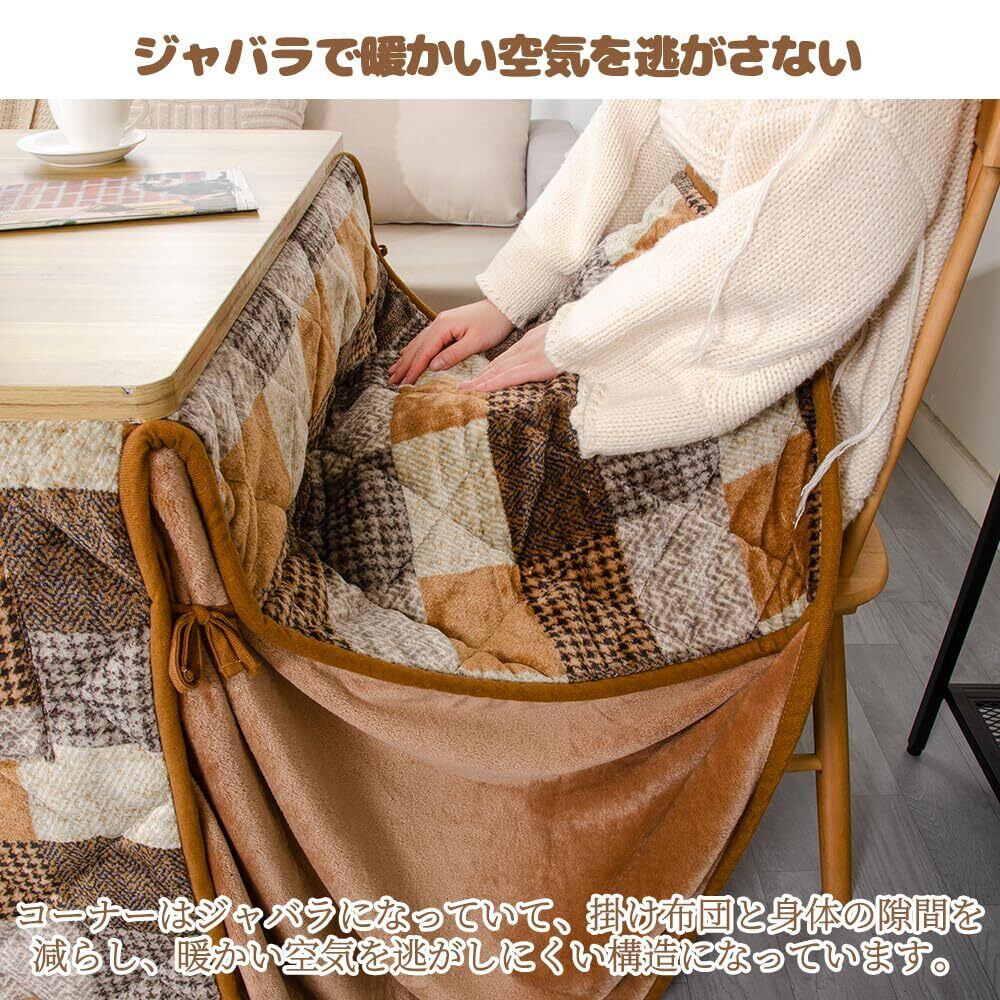 JEMA ハイタイプ こたつ布団 単品 ダイニングこたつ布団 テーブル用 ダイニングコタツ布団 省スペース 長方形 掛け布団 こたつ掛け布団 吸湿発熱 洗える ふわふわ感触 フランネル素材 約240x295cm チエック ブラウン