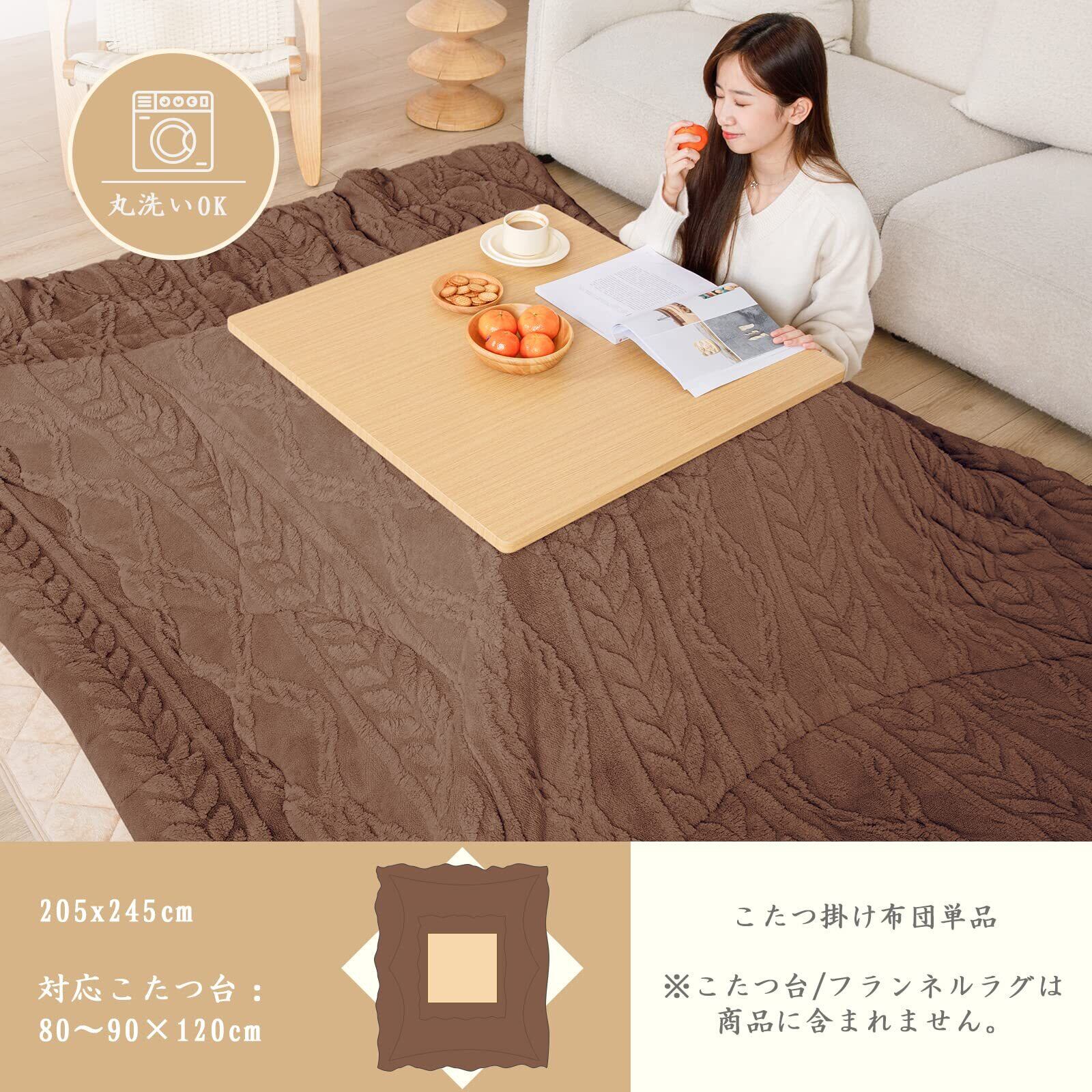「心地よいあたたかさをもたらす『Vamcheer こたつ布団』で、穏やかな冬のひとときをお楽しみください!」/特長:205x245cmの大判サイズは、広めのこたつやテーブルにぴったり。ブラウンの優しい色合いとジャガードボアのデザインが、どんなインテリアにも調和し、より暖かみのある空間を演出します。
