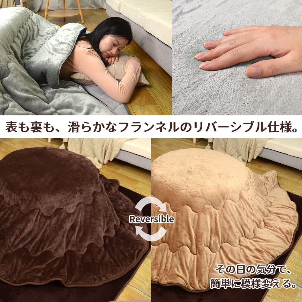 【こだわる素材】ふんわりフランネル使用省スペースこたつ掛け布団。両面に寝具によく使われる「フランネル」と呼ばれる素材を使用しており、ふんわりやわらかな肌触りが特徴のこたつ布団です。