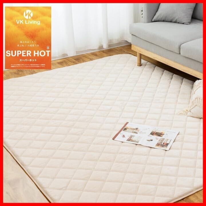 【新春セール】VK Living こたつ敷き布団 ラグ 3畳 【SUPER HOT】 両用 カーペット こたつマット 長方形 こたつ敷布団 190×240cm キルトラグ 厚手 マイクロファイバー ふんわり ウレタン10mm ホットカーペット対応 滑り止め付き おしゃれ ベージュ