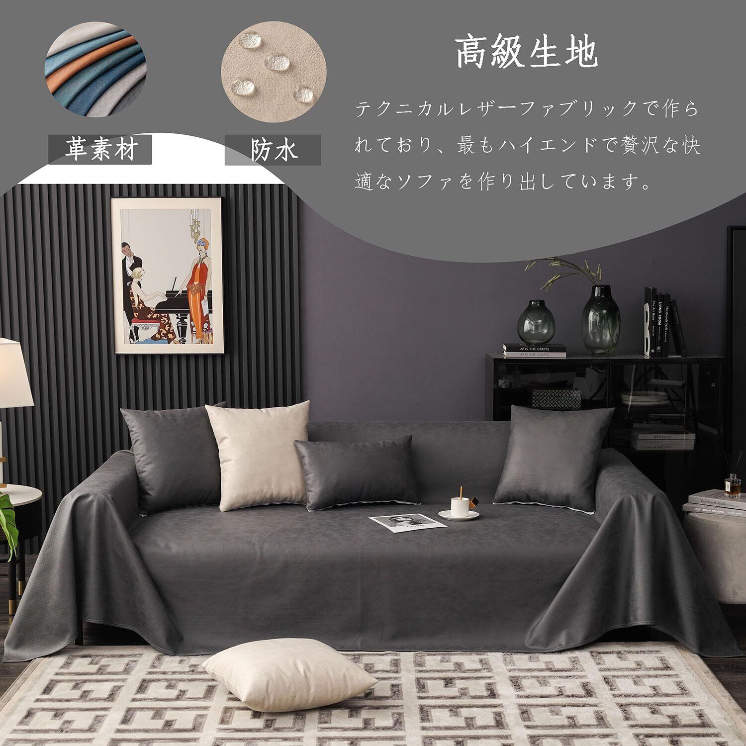 防水ソファカバー レザー ソファー保護カバー 撥水加工 滑り止め 毛髪不粘着 爪とぎ防止 防塵 汚れ防止 多機能 ソファーシーツ 犬猫対策 ペット対応 全面防水 抗菌防臭 2人掛け 3人掛け 4人掛け 替えソファカバー 四季適用 洗える 洗濯機洗い 210x130cm (グレー)