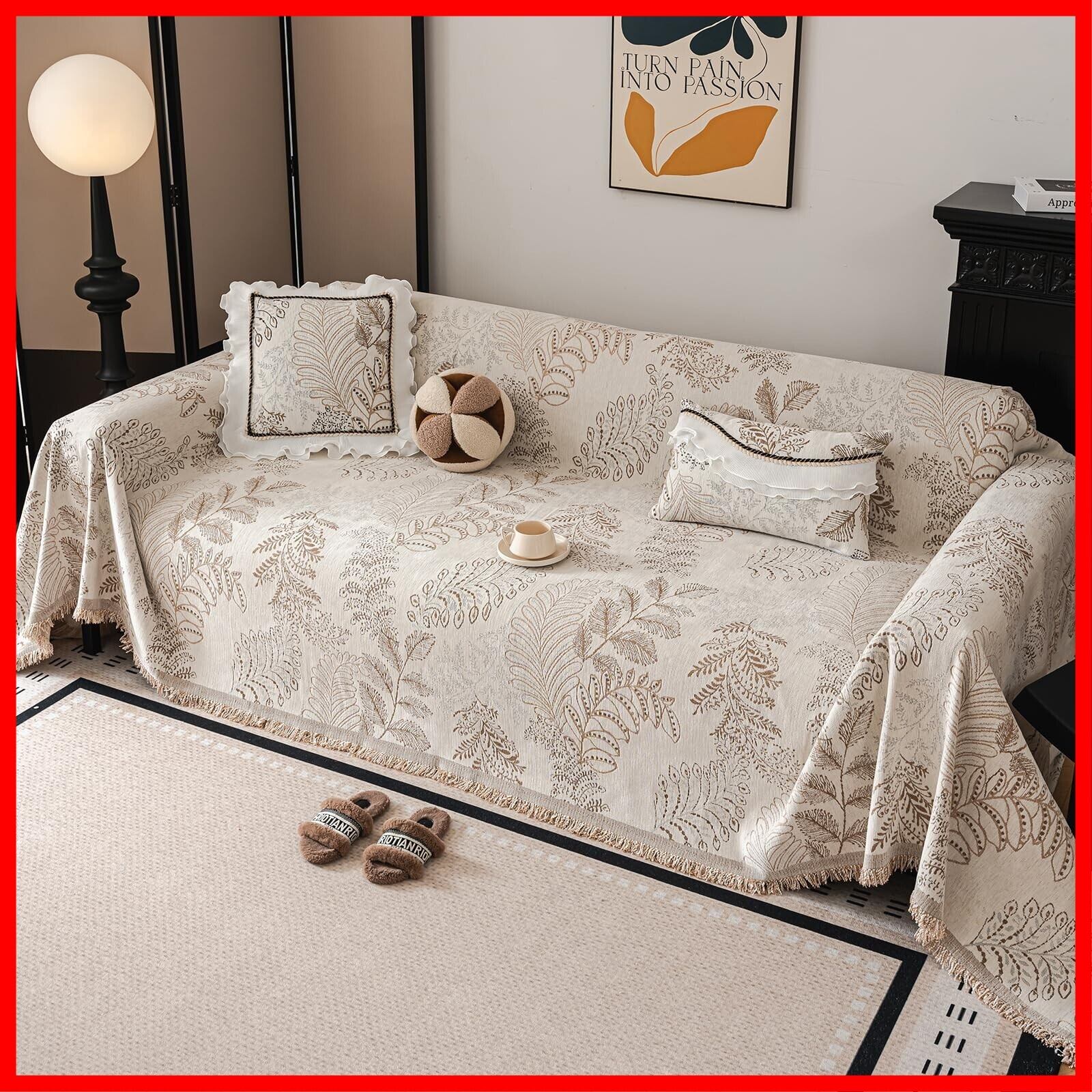JEMAジェマ ソファーカバー マルチカバー ソファーシーツ ブランケット 長方形 大判 1人掛け 北欧風 おしゃれ 柔らかい 汚れ防止 多機能 防塵カバー テーブルクロス テーブルカバー マルチクロス シンプル 洗濯可 人気 雑貨 四季通用 90x180cm シェニール 植物柄 コーヒー