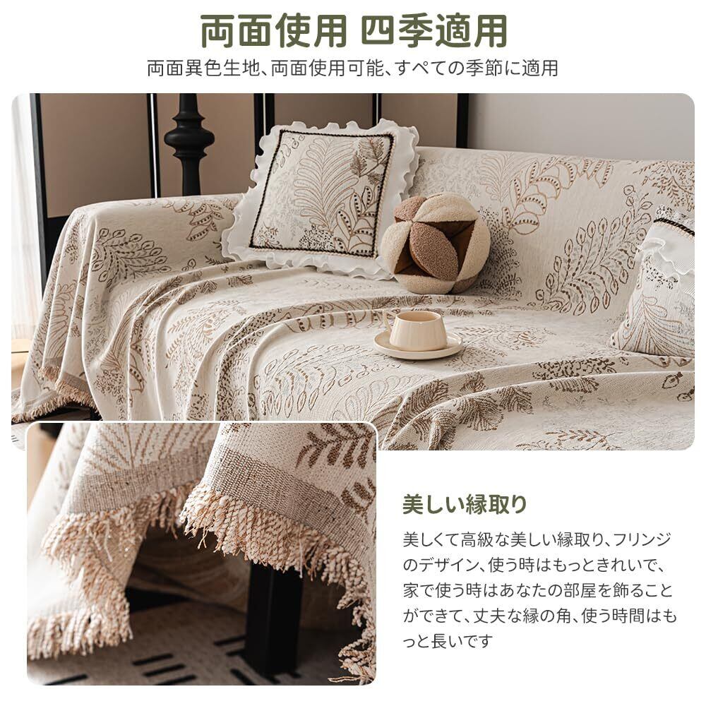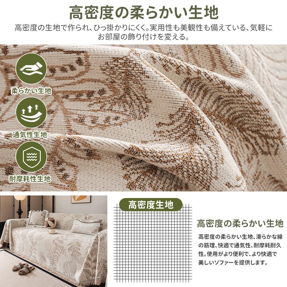 【在庫処分】JEMAジェマ ソファーカバー マルチカバー ソファーシーツ ブランケット 長方形 大判 1人掛け 北欧風 おしゃれ 柔らかい 汚れ防止 多機能 防塵カバー テーブルクロス テーブルカバー マルチクロス シンプル 洗濯可 人気 雑貨 四季通用 90x180cm シェニール 植物柄 コーヒー