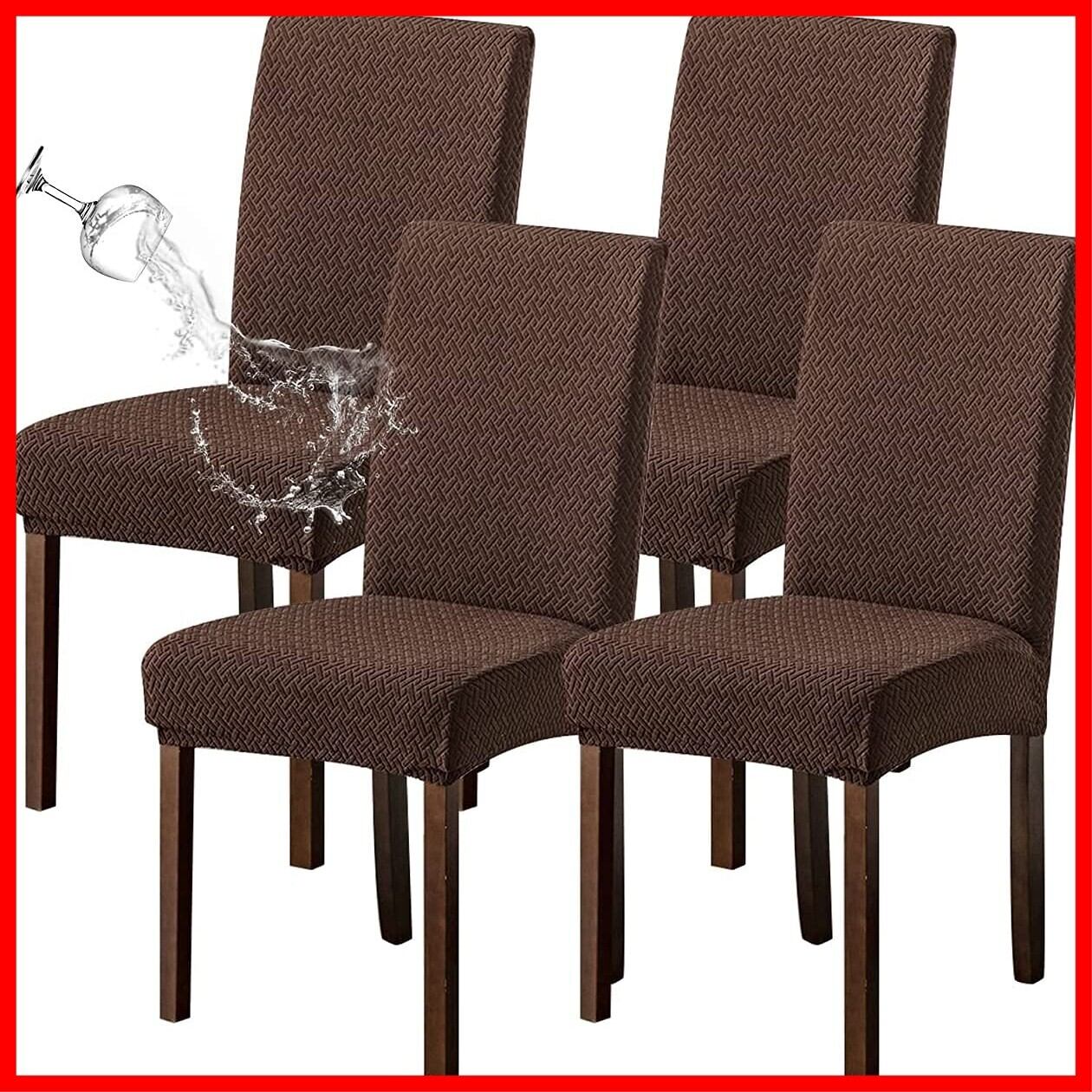 【新春セール】椅子カバー 4枚, チェアカバー 防水伸縮性素材 耐久性洗えると取り外し 結婚披露宴、会議、お祝い、家族のダイニングルームなどに使用できる (コーヒー)