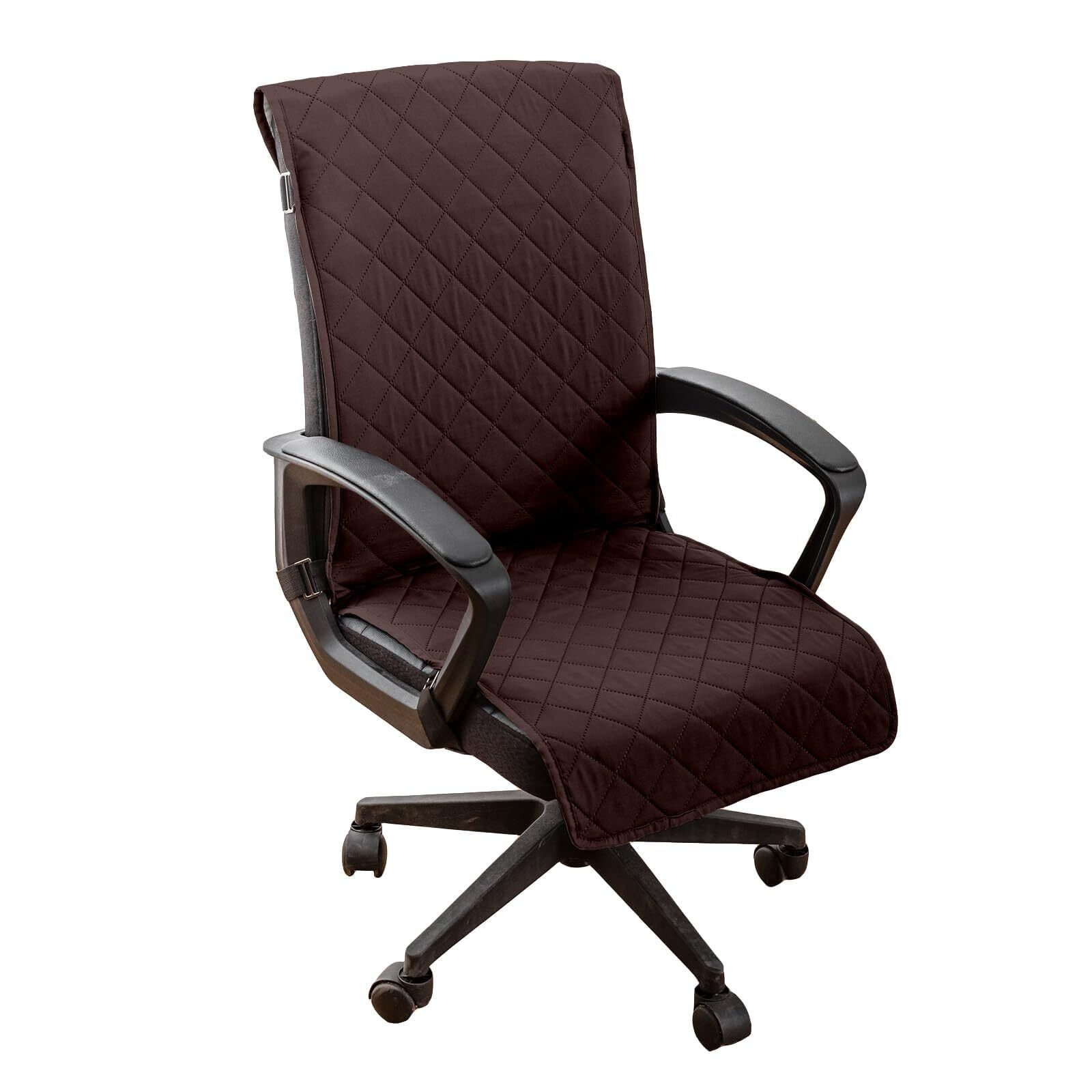 「あなたの大切な椅子をしっかり守る、安定性とスタイルを兼ね備えた『チェアカバー』をご提案します!」/特長:このチェアカバーは、撥水性と滑り止め機能を持つ高品質な素材で作られています。個性的なコーヒーカラーが施され、あらゆる椅子にぴったりフィットします。
