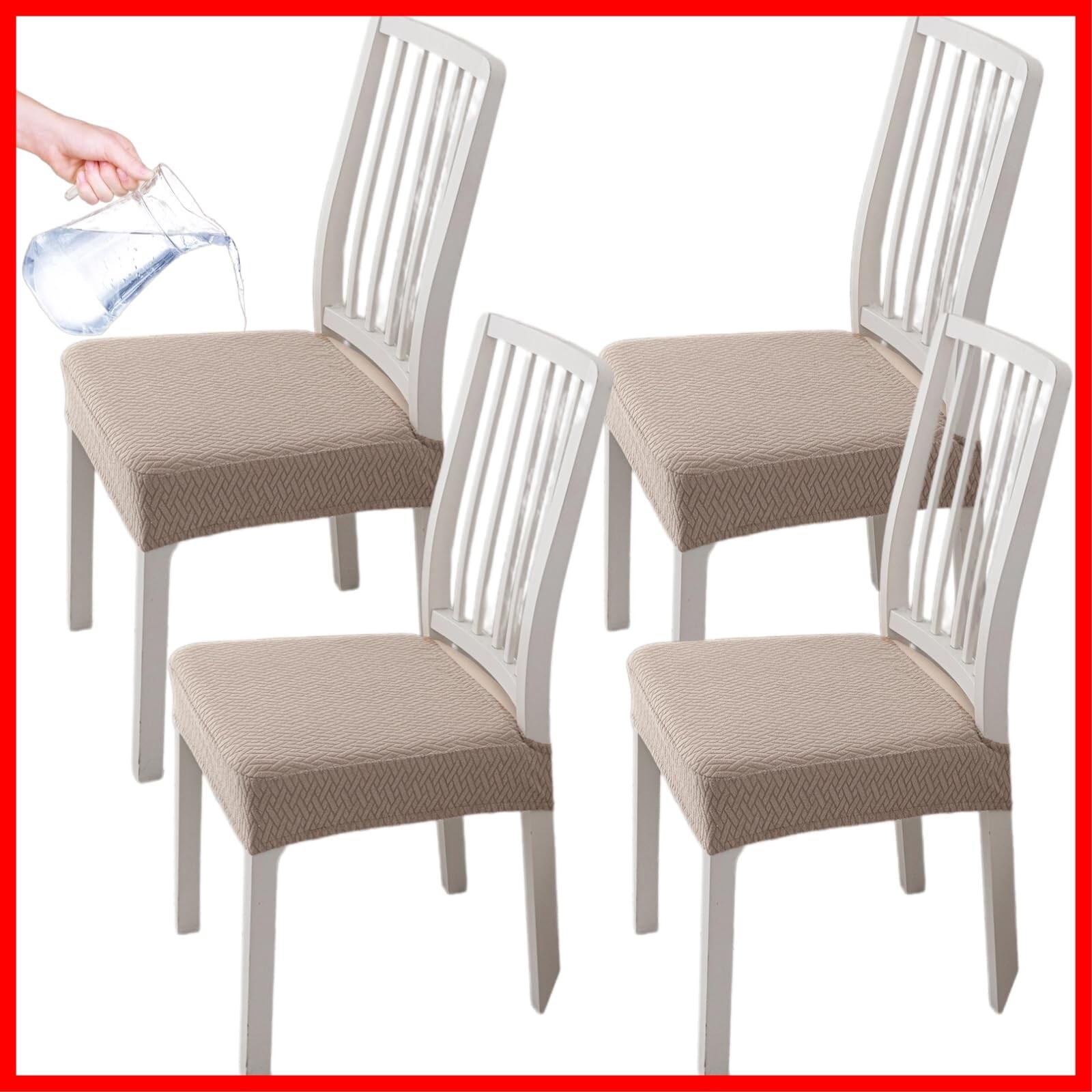 椅子カバー オフィス用 ストレッチ 椅子カバー 座面のみ チェアカバー 撥水 ダイニングチェアカバー 椅子クッションカバー 伸縮性 耐久性 汚れ防止 無地 ぴったりフィット 椅子座面カバー オフィスチェアカバー 犬猫対策 取り外し簡単 (カーキ, 4枚セット)