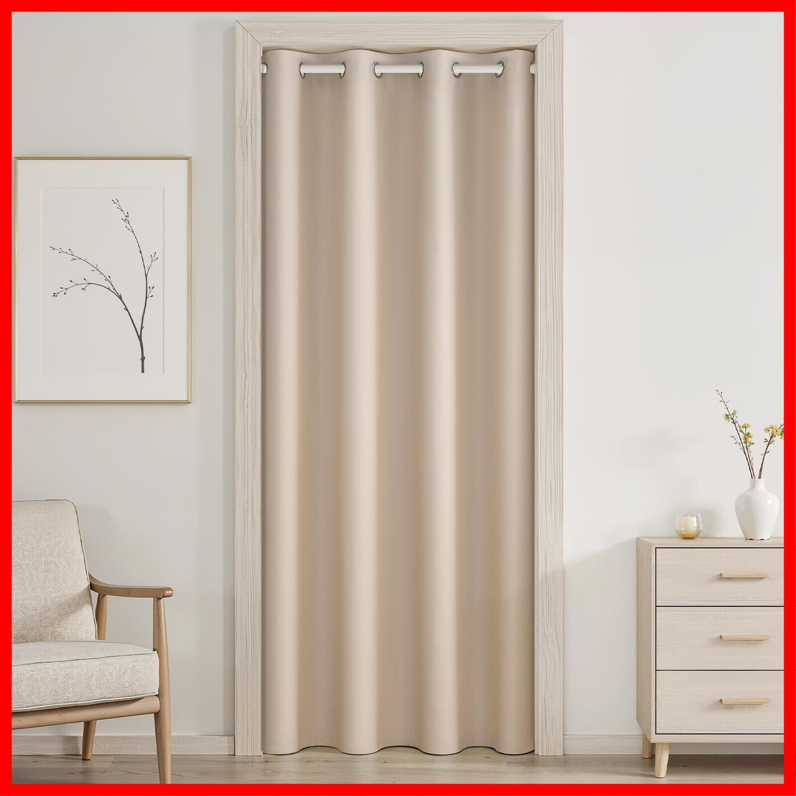 Topfinel 遮光カーテン 間仕切り 断熱 幅120cm 丈200cm 1枚入り ベージュ ハトメ型 突っ張り棒 仕切り ドア 目隠し 玄関 キッチン リビング