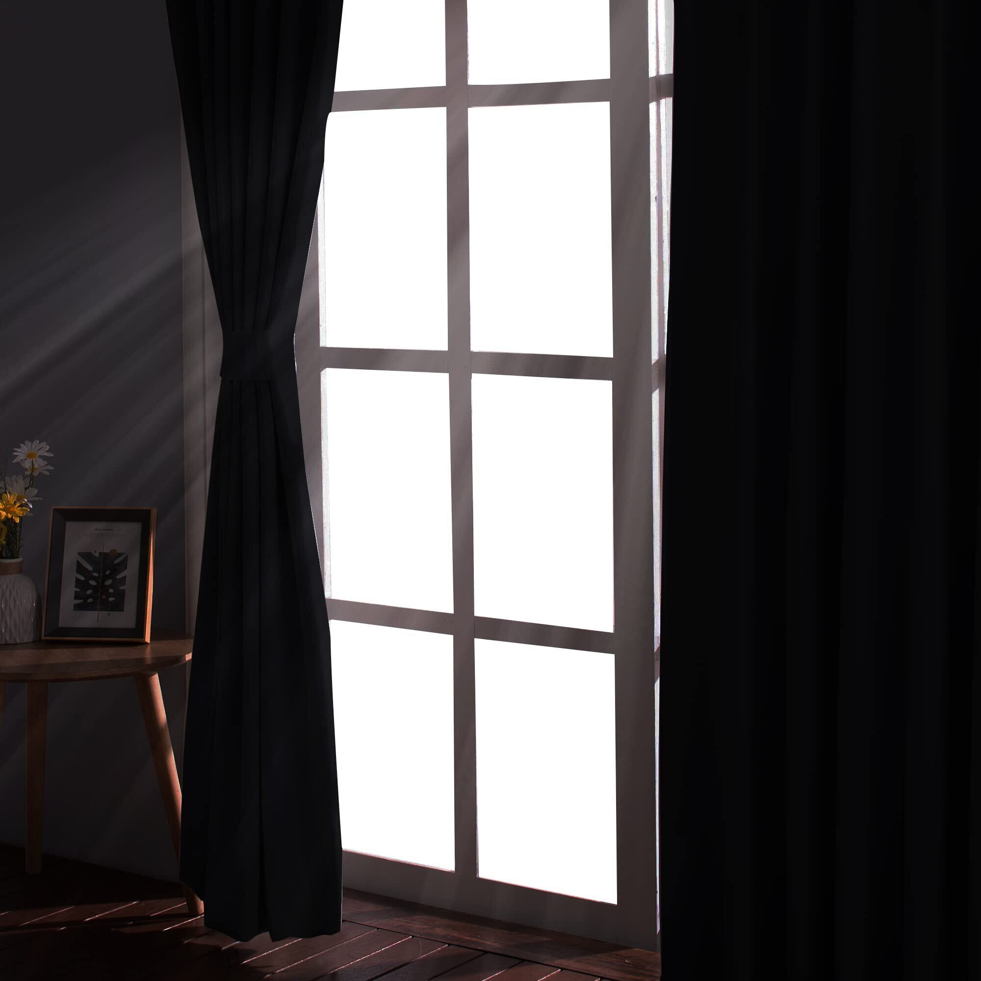 NICETOWN 遮光カーテン カフェーカーテン 仕切り用 幅100cm丈60cm ブラック 2枚セット 防音 断熱 厚地 目隠し 小窓用 キッチン 北欧 子供ルーム 部屋 居間 寝室
