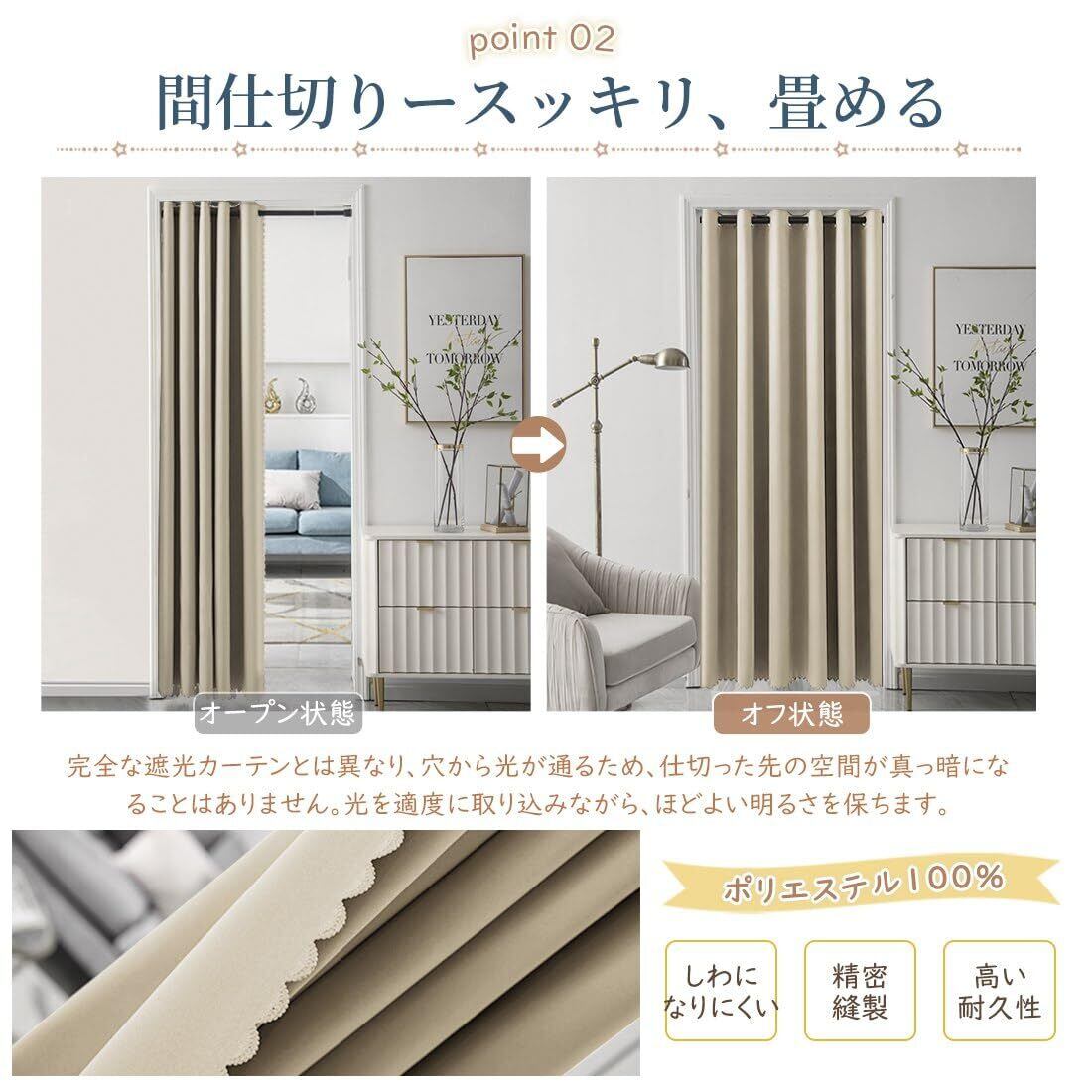 【サイズ】 :幅100cm*丈190cm「幅50cm-66cm範囲の設置場所に適応しております」 【セット内容】:間仕切りカーテン+ハトメ+タッセル 【素材】:ポリエステル100% 特有の三重織りのテクノロジーにより、遮光カーテン生地を使用することで普通ののれんより外光をしっかりとシャットアウトしてくれます。生地がしっかり質感あり、手触りがいいし、丈夫で長持ちします。色が褪せにくく、耐久性に優れる。※機能:遮光/遮熱保温/間仕切り/ウォッシャブル。