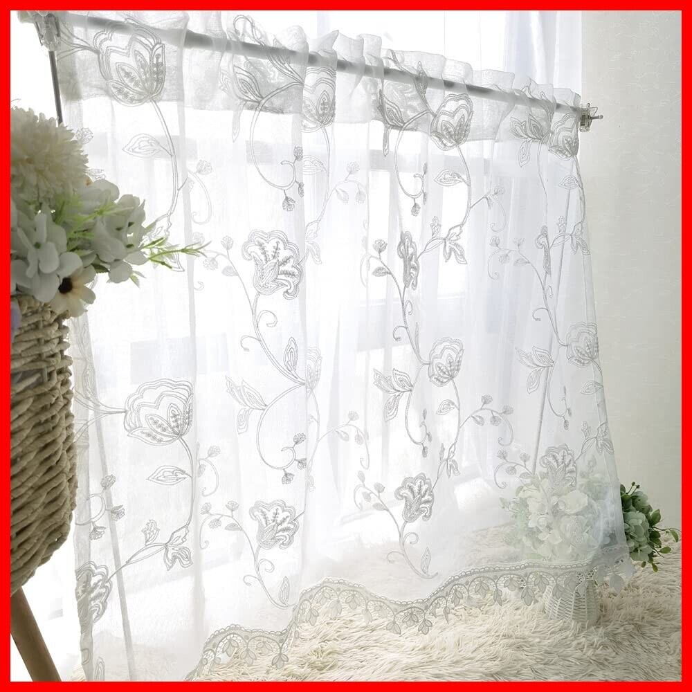【特価セール】pureaqu おしゃれ 花柄 白いカフェカーテン 短い 小窓 レースカーテン パーティション キッチン 間仕切り半窓カーテン お風呂 洗面所 居間 喫茶店 1個 幅100cm×丈80cm