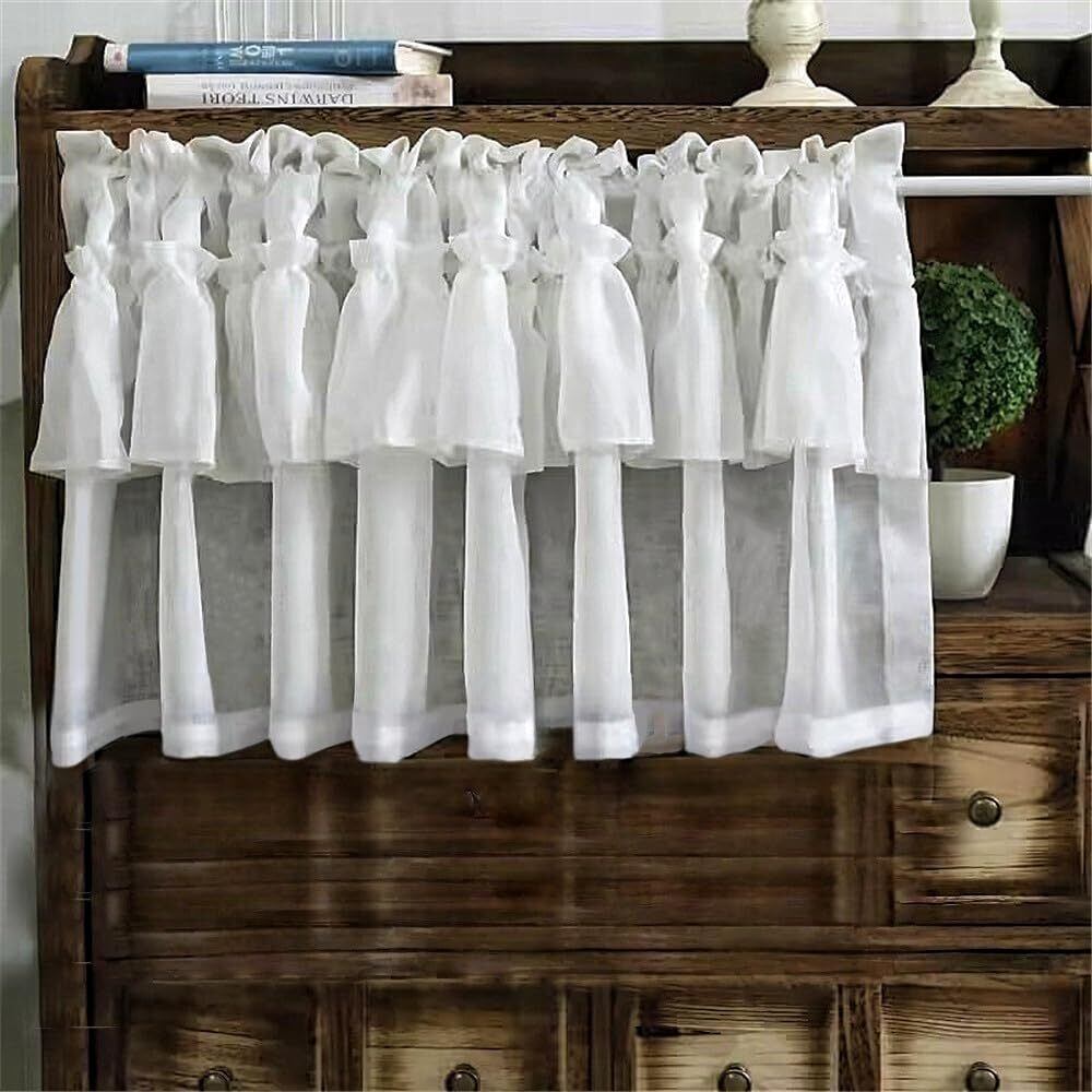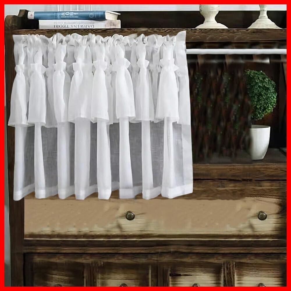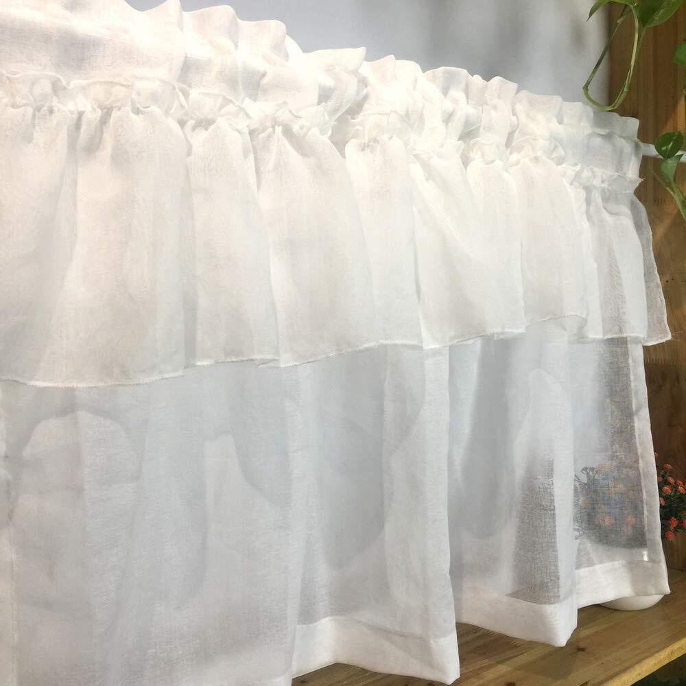 【新春セール】純粋な 白い ラッフルカフェカーテン リネンルック レースカーテンバランス キッチン用 浴室 ショートボイルカーテンドレープ 小さな窓 室内装飾 ドアパネル 1枚組 幅100*丈50cm