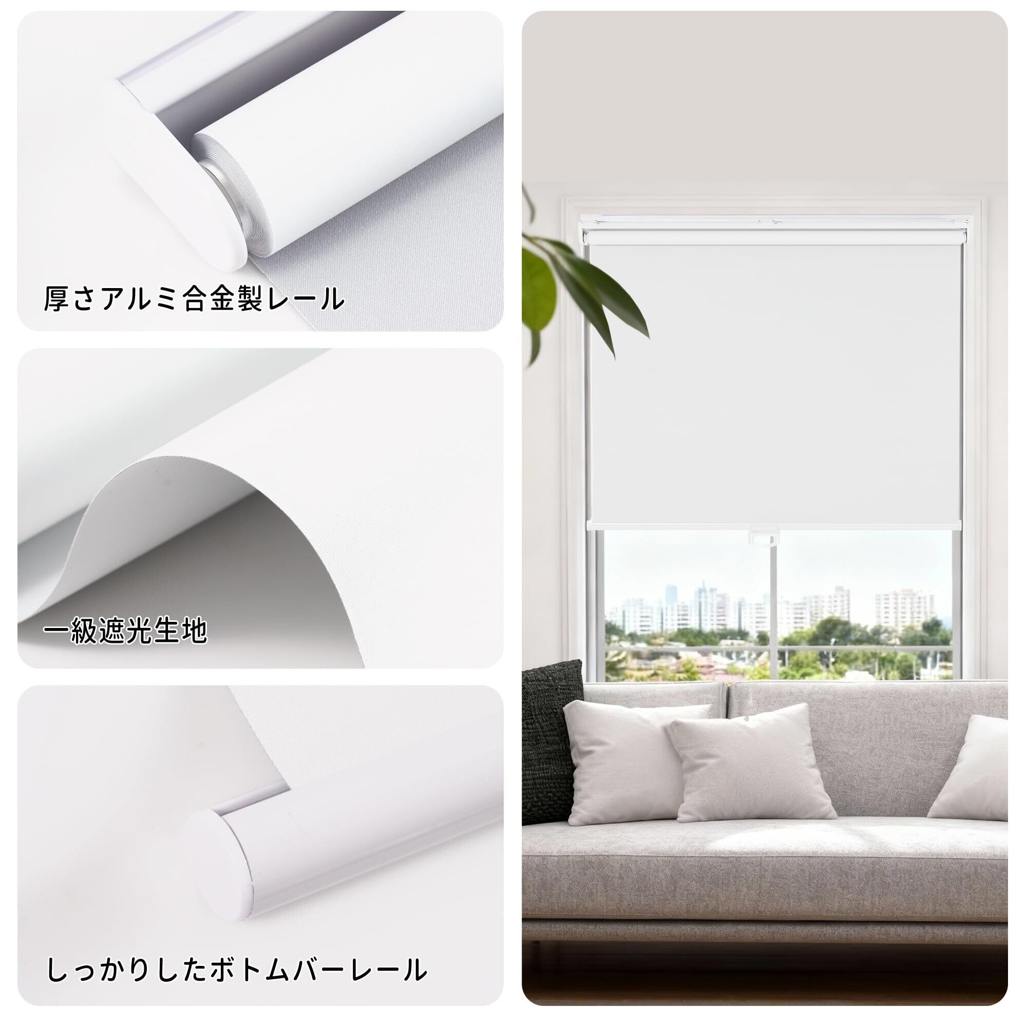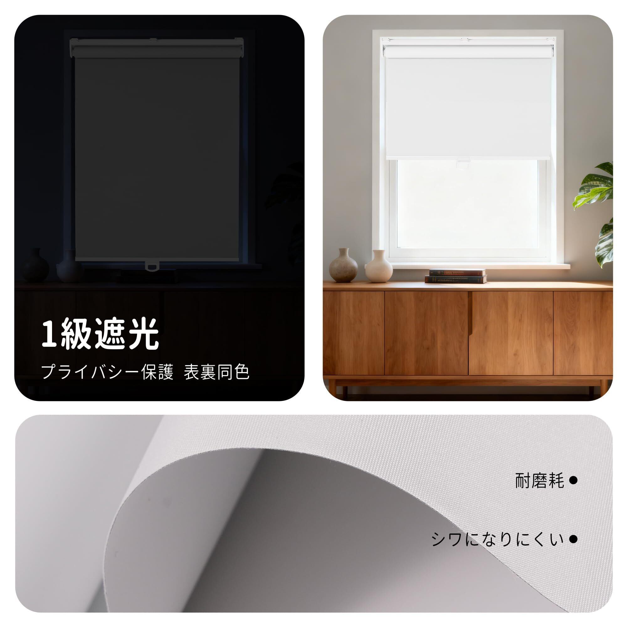 [1級遮光&快適な使用心地]遮光率99.99%の1級遮光の機能で日差しや紫外線を最大限に防ぐことで、家具やフローリングを日焼けから守ります。夏は強い日差しを遮断し室内温度の上昇を抑え、冬は室外の寒気を遮り効果が期待できます。 ロールスクリーンの利用により、室内環境が快適になり、エアコンや暖房の使用量も削減できます。さらに、シンプルな無地デザインは様々なインテリアと調和し、快適な雰囲気を演出してくれます。