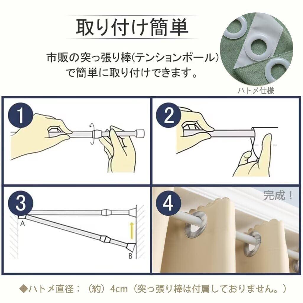 【サイズ】 :幅100cm*丈200cm「幅50cm-66cm範囲の設置場所に適応しております」 【素材】:ポリエステル+プラスチック(ハトメ部分) 伸縮性がある素材を採用し、シワになりにくい。ちょうどいい厚さ自然に垂れ、形状安定効果あり。