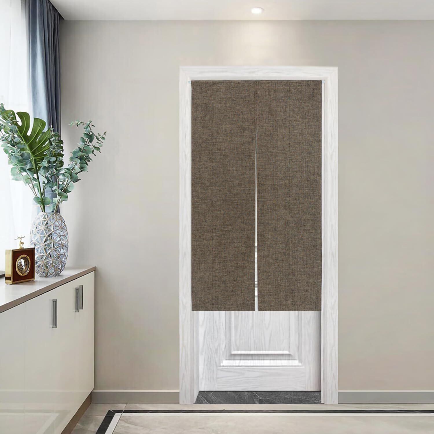 【数量限定】おしゃれ目隠しのれん和風暖簾5色選べ麻風キチンリビングロングカーテン (濃いブラウン, 幅72㎝X丈170㎝)